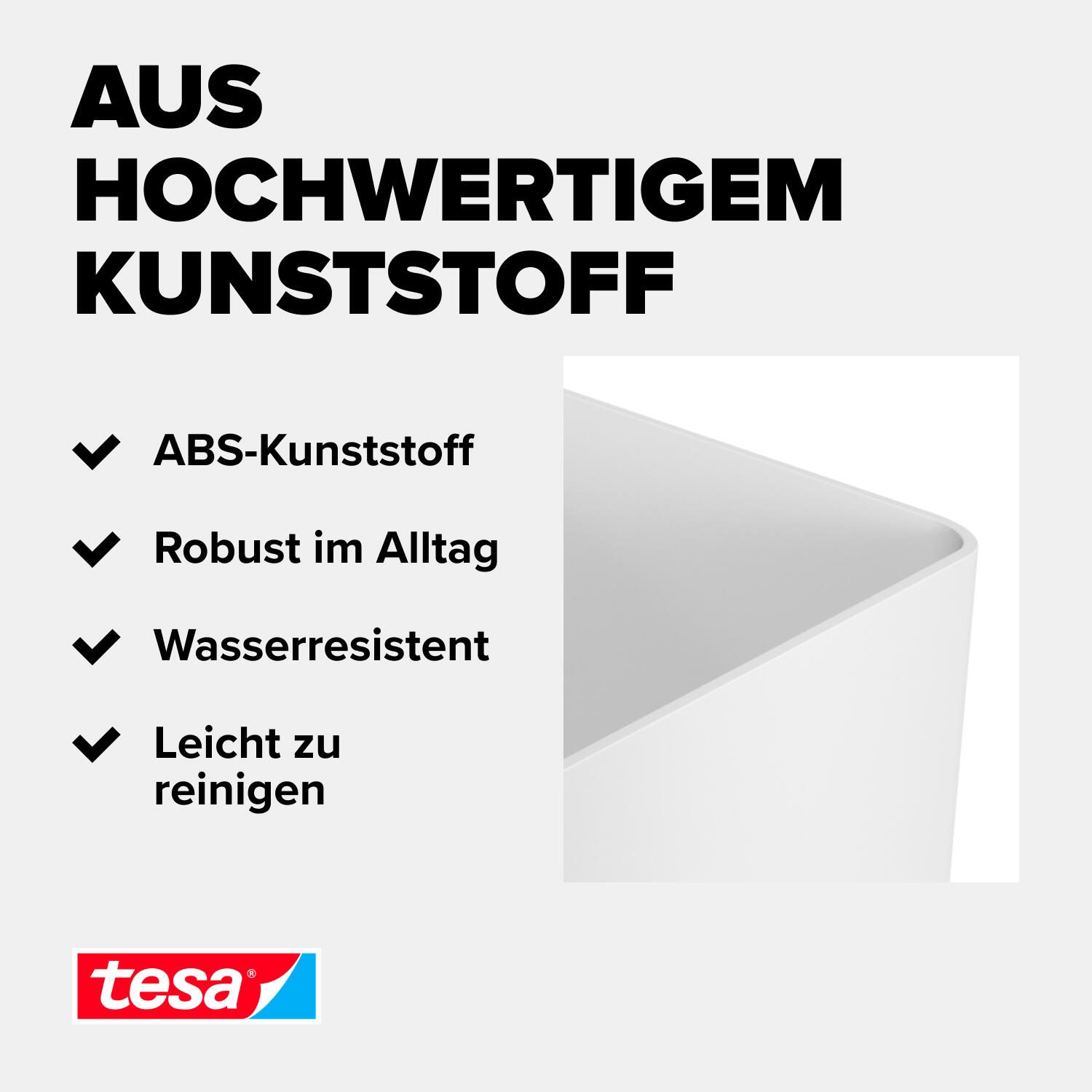 Der tesa® Küchenutensilienhalter ist ein praktischer und vielseitiger Helfer, der sich ideal zur ordentlichen Aufbewahrung Ihrer Küchenwerkzeuge eignet. Gefertigt aus robustem ABS Kunststoff, besticht er durch seine langlebige und pflegeleichte Oberfläche in elegantem Weiß. Mit einer Breite von 14,5 cm, einer Höhe von 8,5 cm und einer Länge von 24,0 cm bietet der Halter ausreichend Platz, um verschiedene Utensilien übersichtlich und griffbereit zu organisieren.