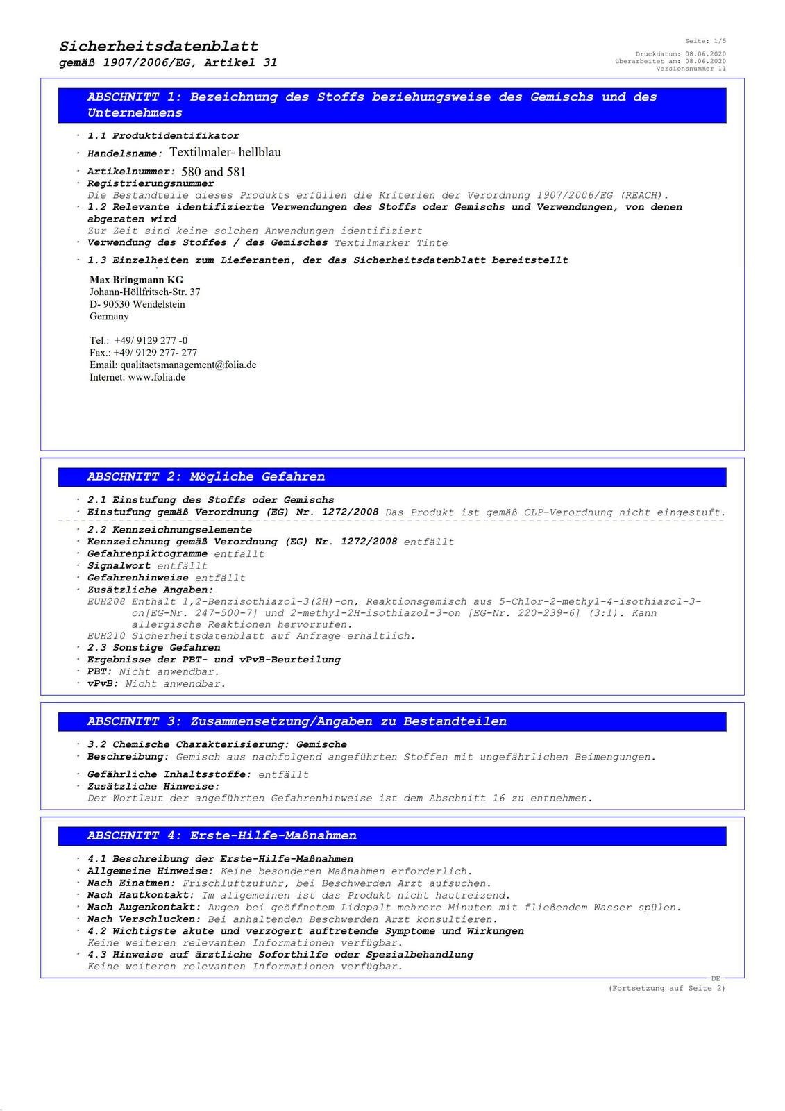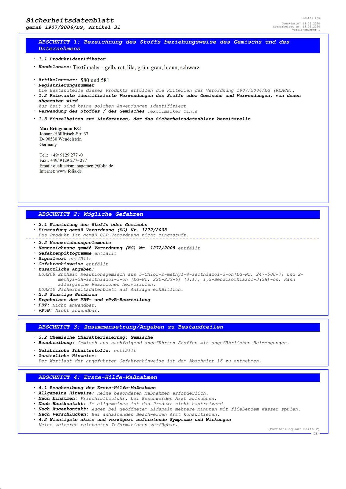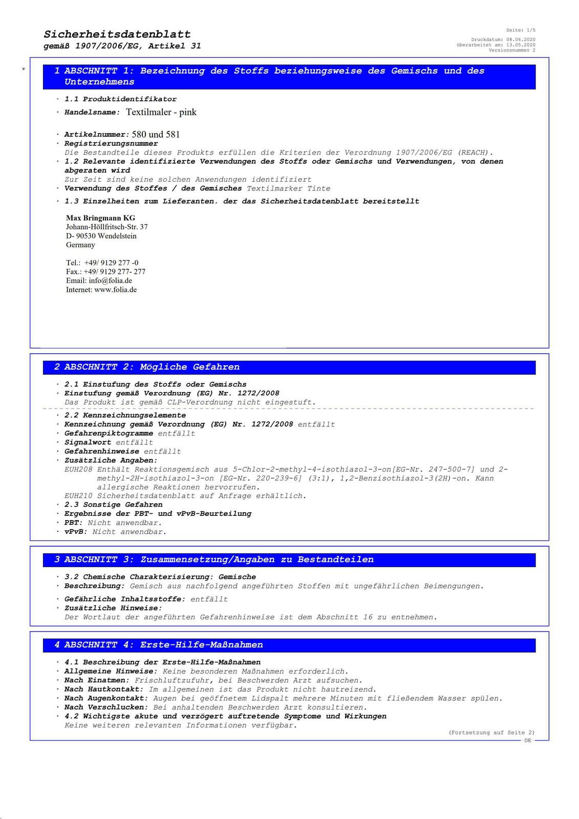 - Eigenschaften: wischfest, wasserfest, lichtbeständig
