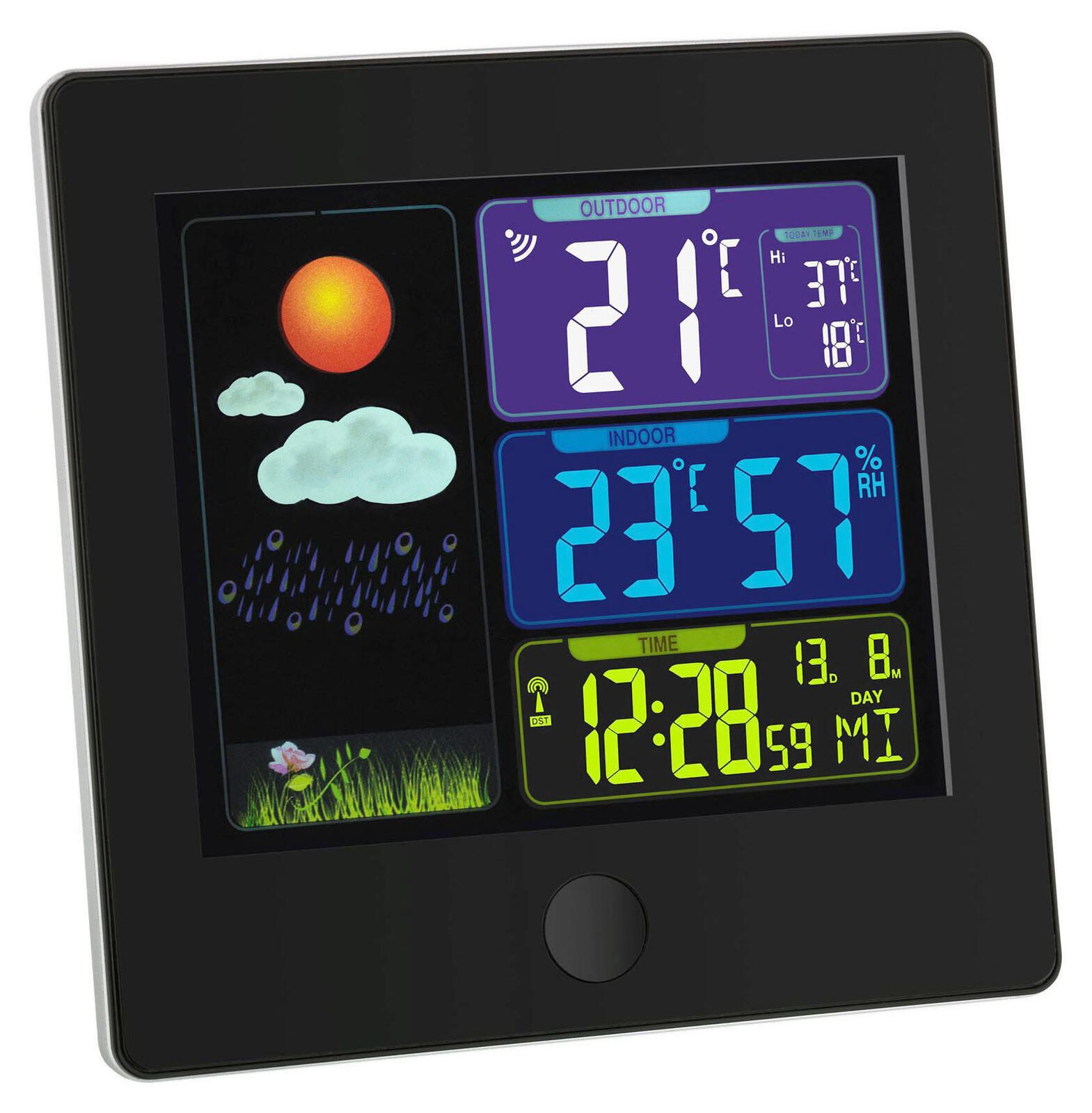 Die TFA® Wetterstation SUN 35.1133.01 in elegantem Schwarz bietet dir präzise Wetterinformationen im handlichen Format. Dank der Tischaufstellung hast du jederzeit die aktuellen Wetterdaten im Blick.