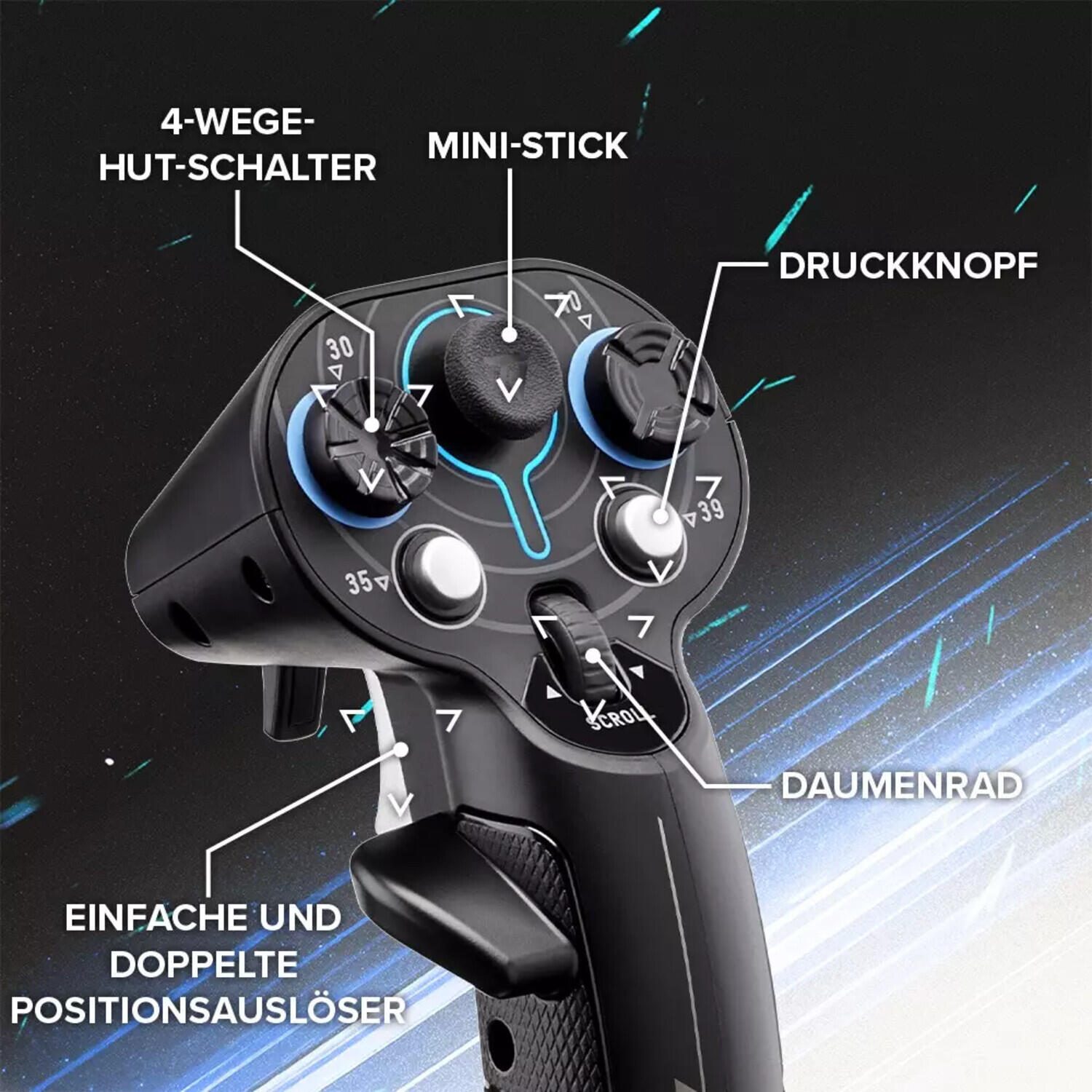 - Der perfekte Joystick, um die Sterne zu erobern: 21 Aktionstasten auf dem Flightstick, darunter 2 Trigger, 2 Hut-Schalter, 1 Ministick und 1 Daumenrad