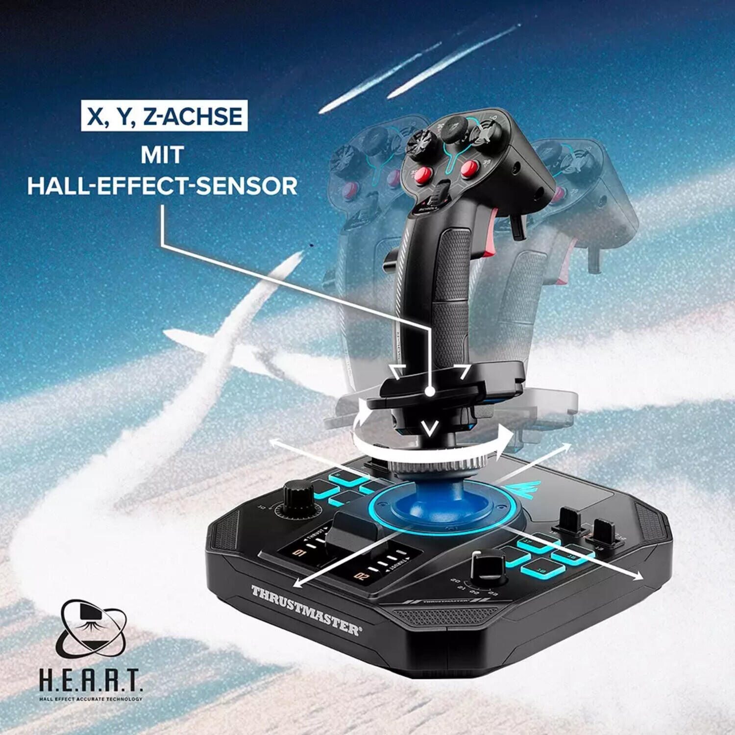 Beherrschen Sie den Himmel mit dem Sol-R 4 HOTAS, das für die Dominanz im Luftraum und darüber hinaus entwickelt wurde! Dieses HOTAS-Set besteht aus einem beidhändig bedienbaren Joystick und einem Schubhebel. Es vereint alle Elemente, die Sie brauchen, um Ihren Gegnern überlegen zu sein. Der 3-Achsen-Joystick (X, Y, Z) mit 16-Bit-Hall-Effekt-Sensor und der Schubhebel mit 80 mm Verfahrweg sorgen für Wendigkeit und Zuverlässigkeit bei der Ausführung selbst komplexester Manöver.