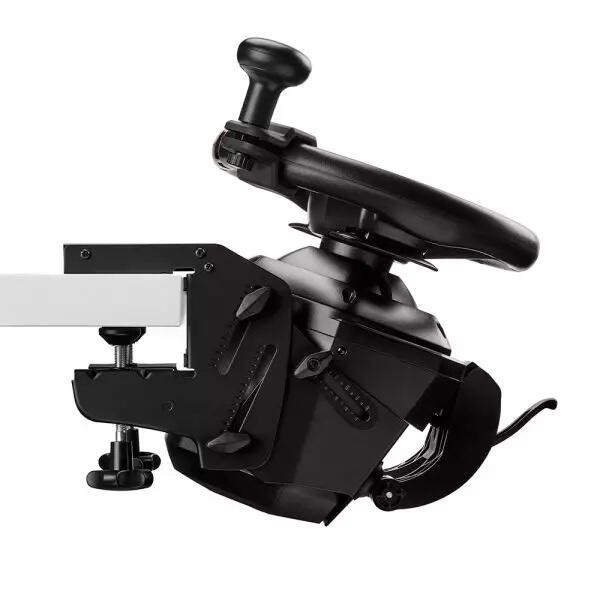 Das SimTask Steering Kit verfügt über ein Klemmsystem für Schreibtische mit einer Dicke von 15 bis 50 mm, mit dem sich Neigung und Höhe des T128 ohne Werkzeug oder Demontage einstellen lassen. Wechseln Sie schnell von einer Position in die andere – von Autorennen über Landwirtschaftssimulationen bis hin zum Trucking.