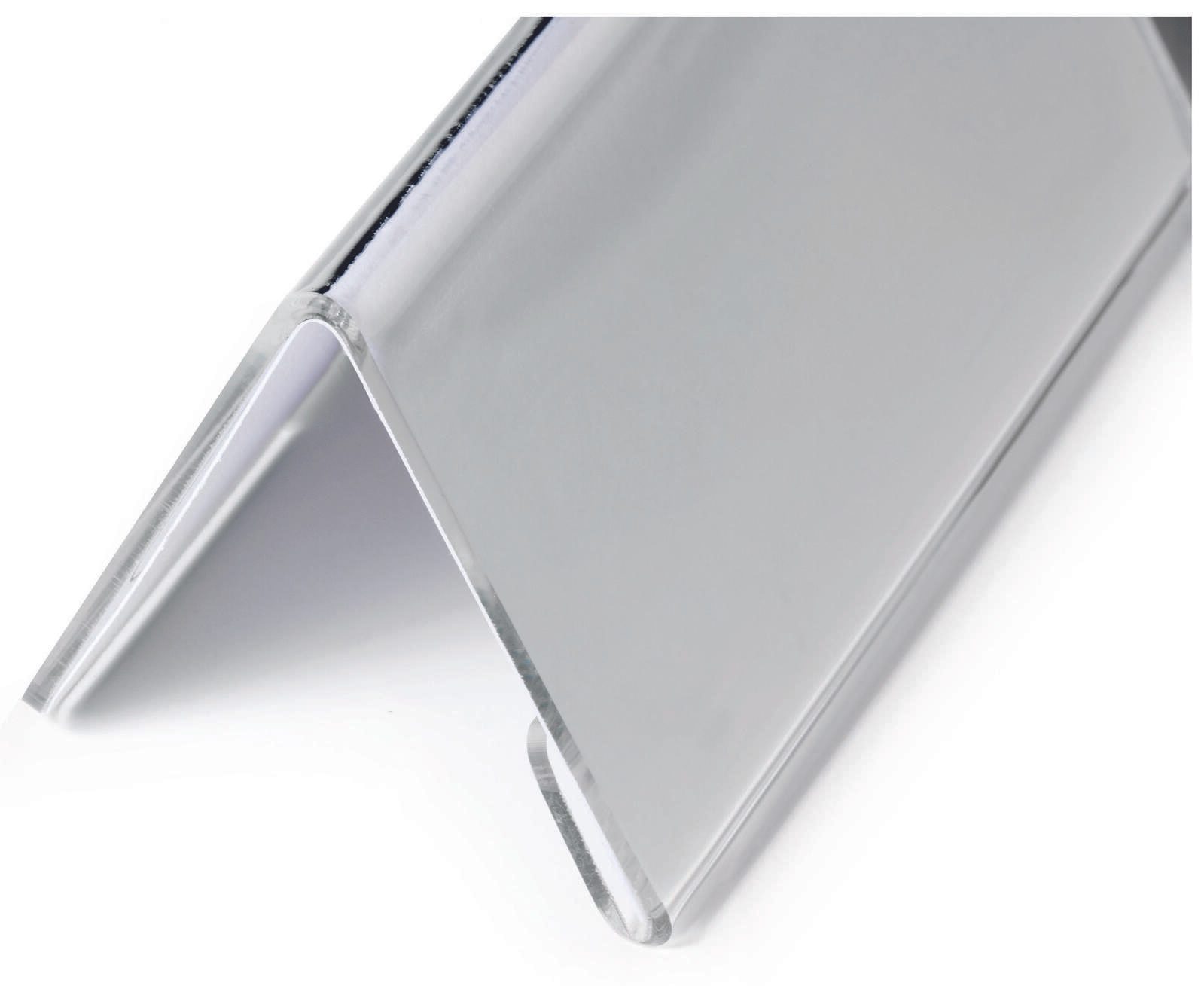 Die DURABLE Tischnamensschilder in der praktischen Größe von 10 cm x 5.2 cm sind die ideale Lösung für eine professionelle und ansprechende Präsentation deiner Gäste oder Mitarbeiter. Diese transparenten Namensschilder überzeugen durch ihr elegantes Design in Dachform, das nicht nur stilvoll, sondern auch funktional ist. Hergestellt aus hochwertigem Acryl, bieten diese Tischnamensschilder eine beidseitige Lesbarkeit, was bedeutet, dass die Namen sowohl von vorne als auch von hinten gut sichtbar sind. Dies ist besonders vorteilhaft in Situationen, in denen die Schilder von verschiedenen Seiten betrachtet werden, wie zum Beispiel bei Konferenzen, Veranstaltungen oder in Besprechungsräumen. Die transparente Farbe ermöglicht es, die Schriftzüge klar und deutlich hervorzuheben, ohne dass das Schild selbst von der Umgebung ablenkt. Mit einem Pack von 10 Stück bist du bestens ausgestattet, um mehrere Tische oder Bereiche zu kennzeichnen. Egal ob für geschäftliche Anlässe, private Feiern oder als dauerhafte Lösung in deinem Büro, die DURABLE Tischnamensschilder bieten dir die Flexibilität, die du benötigst. Die Verwendung dieser Namensschilder ist kinderleicht. Du kannst die Einsteckschildchen einfach einfügen und bei Bedarf schnell austauschen. Das robuste Material sorgt dafür, dass die Schilder langlebig sind und auch bei häufigem Gebrauch in einwandfreiem Zustand bleiben. Setze auf die DURABLE Tischnamensschilder, um jedem Anlass einen Hauch von Professionalität und Eleganz zu verleihen. Die Kombination aus ansprechendem Design und praktischer Funktionalität macht sie zur perfekten Wahl für jeden, der Wert auf eine klare und stilvolle Präsentation legt.Technische Daten