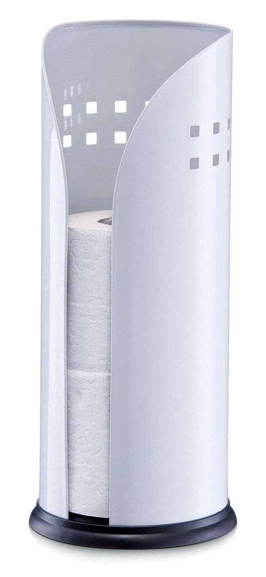 Der Zeller Toilettenpapierhalter in elegantem Weiß vereint Funktionalität mit ansprechendem Design. Mit einem Durchmesser von 14 cm bietet er ausreichend Platz für bis zu drei Rollen Toilettenpapier, was ihn zur idealen Lösung für jedes Badezimmer macht. Die pulverbeschichtete Metalloberfläche sorgt nicht nur für eine ansprechende Optik, sondern auch für eine hohe Langlebigkeit und Widerstandsfähigkeit gegenüber Feuchtigkeit. Mit seinen kompakten Maßen von 14.5 cm x 14.5 cm x 34.5 cm fügt sich dieser Toilettenpapierhalter harmonisch in jede Badezimmerumgebung ein, ohne dabei viel Platz einzunehmen. Die schlichte und zeitlose Farbgebung in Weiß ermöglicht es, den Halter mühelos in bestehende Badezimmerkonzepte zu integrieren, egal ob modern oder klassisch. Die einfache Handhabung des Zeller Toilettenpapierhalters sorgt dafür, dass du jederzeit schnell und unkompliziert auf frisches Toilettenpapier zugreifen kannst. Durch die Möglichkeit, gleich drei Rollen zu lagern, bist du bestens gerüstet für einen längeren Zeitraum ohne Nachschub. Dies ist besonders praktisch in Haushalten mit mehreren Personen oder bei Besuch, wenn der Bedarf an Toilettenpapier höher ist. Die Kombination aus durchdachtem Design und robustem Material macht den Zeller Toilettenpapierhalter zu einem unverzichtbaren Accessoire in deinem Badezimmer. Genieße die Vorteile eines gut organisierten und stilvollen Badezimmers mit diesem praktischen Toilettenpapierhalter, der nicht nur funktional ist, sondern auch einen Hauch von Eleganz verleiht.Technische Daten