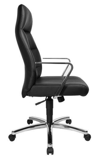 Der Topstar Chairman 70 Chefsessel vereint stilvolles Design und herausragenden Komfort, perfekt für anspruchsvolle Nutzer. Dieser Chefsessel ist nicht nur ein Blickfang in jedem Büro, sondern bietet auch eine Vielzahl von Funktionen, die Deinen Arbeitsalltag erleichtern. Die stufenlose Sitzhöhenverstellung mit Toplift ermöglicht es Dir, die ideale Sitzhöhe zwischen 44 und 55 cm ganz nach Deinen Bedürfnissen anzupassen. Die komfortable Synchron-Mechanik sorgt dafür, dass sich die Rückenlehne und der Sitz harmonisch bewegen, was eine gesunde Sitzhaltung fördert. Die bequem gepolsterte Rückenlehne und der Sitz mit Knierolle bieten zusätzlichen Komfort, sodass Du auch bei längeren Sitzungen entspannt arbeiten kannst. Mit einer maximalen Tragfähigkeit von bis zu 110 kg ist der Stuhl für verschiedene Körpergrößen und -gewichte geeignet. Das robuste Stahl-Fußkreuz und die stabilen Stahl-Armlehnen garantieren eine hohe Langlebigkeit und Stabilität. Die Sicherheitsdoppelrollen sind speziell für Teppichböden ausgelegt und gewährleisten eine sichere und flexible Bewegung im Raum. Der Topstar Chairman 70 ist nicht nur funktional, sondern auch ästhetisch ansprechend. Die schwarze Echt-Leder-Oberfläche verleiht dem Sessel eine elegante Note und sorgt gleichzeitig für eine angenehme Haptik. Mit einer Sitzbreite von 50 cm und einer Sitztiefe von 48 cm bietet der Sessel ausreichend Platz für eine komfortable Sitzposition. Die Lehnenhöhe von 70 cm unterstützt eine gesunde Rückenhaltung und trägt zu einem angenehmen Sitzgefühl bei. Der Topstar Chairman 70 Chefsessel ist die ideale Wahl für alle, die Wert auf Qualität, Komfort und ein ansprechendes Design legen.Technische Daten