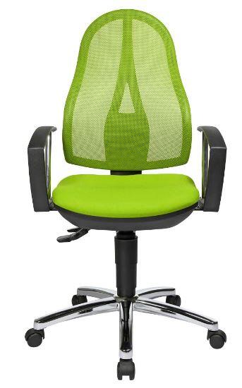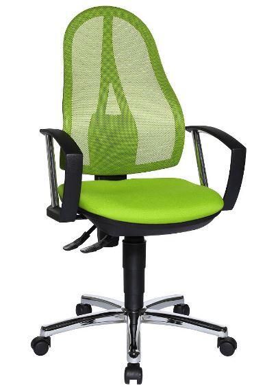 Der Topstar Open Point P Plus Bürodrehstuhl vereint modernes Design mit ergonomischen Vorteilen, um dir ein komfortables und gesundes Sitzen am Arbeitsplatz zu ermöglichen. Mit der stufenlosen Sitzhöhenverstellung durch den Toplift passt sich der Stuhl optimal deiner Körpergröße an und sorgt für eine individuelle Sitzposition. Dies ist besonders wichtig, um Verspannungen und Beschwerden im Rückenbereich zu vermeiden. Ein herausragendes Merkmal dieses Bürodrehstuhls ist die ergonomisch geformte Rückenlehne, die in der Höhe verstellbar ist und mit einem atmungsaktiven Netzbezug ausgestattet ist. Dieser Bezug sorgt nicht nur für eine angenehme Luftzirkulation, sondern auch für eine optimale Unterstützung deiner Wirbelsäule. So bleibt der Rücken auch bei längeren Sitzungen entspannt und gut durchblutet. Der bequeme Bandscheibensitz ist speziell dafür konzipiert, das Becken zu unterstützen und eine gesunde Sitzhaltung zu fördern. Dies trägt dazu bei, Rückenprobleme vorzubeugen und die Konzentration während der Arbeit zu steigern. Die Komfort-Permanentkontaktmechanik ermöglicht eine stufenlose Anpassung der Rückenlehnenneigung, wodurch du jederzeit die für dich angenehmste Position finden kannst. Das verchromte Stahlfußkreuz verleiht dem Stuhl nicht nur eine ansprechende Optik, sondern sorgt auch für Stabilität und Langlebigkeit. Ausgestattet mit Sicherheitsdoppelrollen ist der Stuhl ideal für Teppichböden geeignet und ermöglicht ein müheloses Gleiten, ohne den Boden zu beschädigen. Der Topstar Open Point P Plus Bürodrehstuhl in der ansprechenden Farbe Grün aus Polyester/Kunststoff ist nicht nur funktional, sondern auch ein echter Hingucker in jedem Büro. Er bietet dir die perfekte Kombination aus Stil und Komfort, um deinen Arbeitsplatz zu einem angenehmen Ort zu machen.Technische Daten
