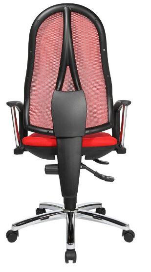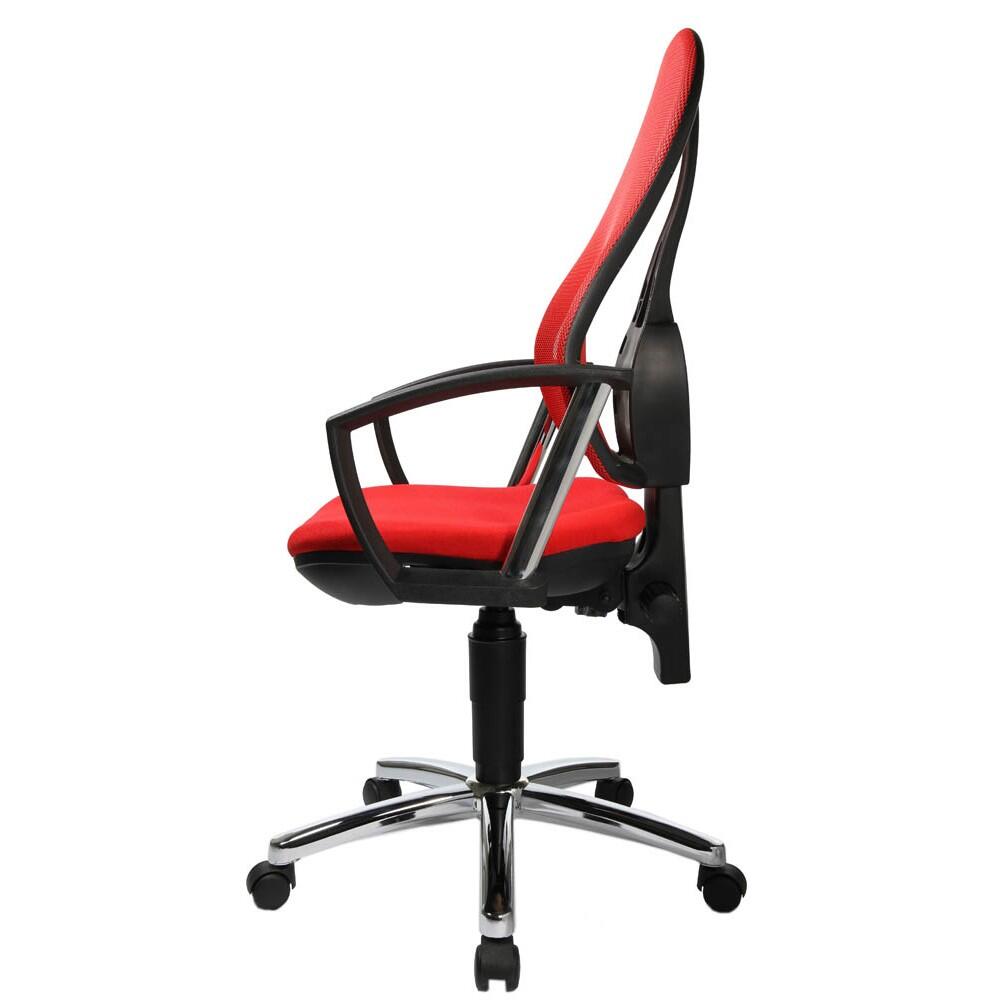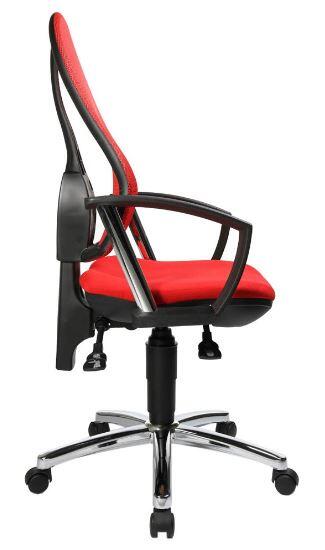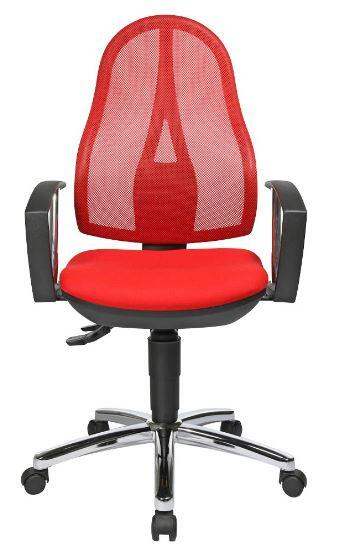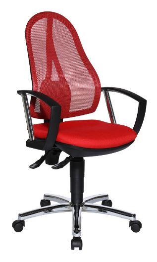 Der Topstar Open Point P Plus Bürodrehstuhl vereint modernes Design mit ergonomischen Eigenschaften, die Deinen Arbeitsalltag erheblich verbessern können. Die stufenlose Sitzhöhenverstellung mit Toplift ermöglicht es dir, die optimale Sitzhöhe für Deine individuellen Bedürfnisse zu finden. Dies sorgt nicht nur für Komfort, sondern auch für eine gesunde Körperhaltung während langer Arbeitsstunden. Die ergonomisch geformte Rückenlehne ist in der Höhe verstellbar und mit einem atmungsaktiven Netzbezug ausgestattet, der für eine gute Luftzirkulation sorgt. Dies trägt dazu bei, dass Du auch an warmen Tagen angenehm sitzen kannst. Der bequeme Bandscheibensitz bietet eine optimale Unterstützung des Beckens und fördert eine gesunde Sitzhaltung, was besonders wichtig ist, um Verspannungen und Rückenschmerzen vorzubeugen. Ein weiteres Highlight ist die Komfort-Permanentkontaktmechanik, die eine flexible Verstellung der Rückenlehnenneigung ermöglicht. So kannst Du die Lehne nach Deinen Wünschen anpassen und die Unterstützung während der Arbeit variieren. Der Bürodrehstuhl ist zudem mit einem stabilen, verchromten Stahlfußkreuz ausgestattet, das für eine hohe Stabilität sorgt. Die Sicherheitsdoppelrollen sind speziell für Teppichböden konzipiert und garantieren ein sicheres und einfaches Bewegen des Stuhls. Der Topstar Open Point P Plus ist in einem ansprechenden Rot gehalten und besteht aus robustem Polyester/Kunststoff. Mit seiner höhenverstellbaren Bauweise und durchdachten ergonomischen Funktionen ist dieser Bürodrehstuhl die perfekte Wahl für alle, die Wert auf Komfort und Gesundheit am Arbeitsplatz legen.Technische Daten