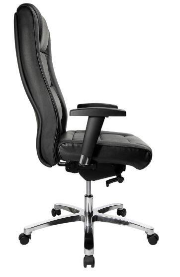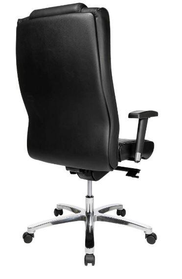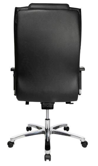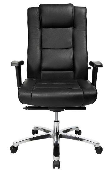 Der Topstar Sitness Director 10 Chefsessel vereint elegantes Design mit höchstem Komfort und Funktionalität. Mit seiner stufenlosen Sitzhöhenverstellung, die durch eine verchromte Gasfeder unterstützt wird, passt sich der Sessel individuell an deine Bedürfnisse an. Dies ermöglicht dir eine ergonomische Sitzposition, die auch bei langen Arbeitsstunden für Entspannung sorgt. Die Rückenlehne aus echtem Leder bietet nicht nur eine ansprechende Optik, sondern ist auch mit einem integrierten Lendenwirbelstützer ausgestattet, der eine optimale Unterstützung für deinen Rücken gewährleistet. So bleibt deine Haltung auch während intensiver Meetings oder kreativer Arbeitsphasen gesund und komfortabel. Der bequeme Muldensitz in Leder sorgt dafür, dass du auch über längere Zeiträume hinweg bequem sitzen kannst. Dank der Body-Balance-Tec Sitzgelenk-Technologie werden dreidimensionale Bewegungen ermöglicht, was die Flexibilität und die Anpassungsfähigkeit des Sessels weiter erhöht. Ein weiteres Highlight ist die komfortable Synchron-Mechanik, die eine synchrone Verstellung von Sitz- und Rückenlehnenneigung erlaubt. Dies fördert eine dynamische Sitzhaltung und unterstützt eine gesunde Rückenposition. Das polierte Aluminium-Fußkreuz verleiht dem Sessel nicht nur Stabilität, sondern auch einen modernen Look. Die Sicherheitsdoppelrollen sind speziell für Teppichböden konzipiert und garantieren ein sicheres und müheloses Bewegen des Sessels. In einem zeitlosen Schwarz gehalten, fügt sich der Topstar Sitness Director 10 Chefsessel harmonisch in jedes Büro- oder Arbeitsumfeld ein. Mit diesem Chefsessel entscheidest du dich für Qualität und Komfort, die deinen Arbeitsalltag maßgeblich verbessern.Technische Daten