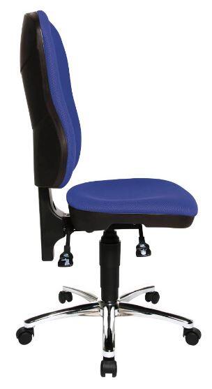 Der Topstar Steel Point 80 Bürodrehstuhl vereint modernes Design mit herausragendem Komfort und Funktionalität. Dieser Stuhl ist die ideale Wahl für alle, die lange Stunden am Schreibtisch verbringen und dabei Wert auf ergonomische Unterstützung legen. Die stufenlose Sitzhöhenverstellung mit Toplift ermöglicht es dir, die Höhe des Stuhls individuell anzupassen, sodass du stets in einer optimalen Position arbeiten kannst. Ein besonderes Highlight ist die extra hohe Rückenlehne, die mit einer speziellen Wirbelsäulenausformung ausgestattet ist. Diese sorgt dafür, dass deine Wirbelsäule während des Sitzens optimal gestützt wird und Verspannungen vorgebeugt werden. Der große, komfortable Spezial-Muldensitz mit Beckenstütze bietet zudem eine angenehme Sitzfläche, die sich deiner Körperform anpasst und somit den Sitzkomfort erheblich steigert. Die Komfort-Permanentkontakmechanik ermöglicht es, die Rückenlehne flexibel an deine Bewegungen anzupassen, was für eine dynamische Sitzhaltung sorgt. Dies fördert nicht nur die Durchblutung, sondern trägt auch zu einer besseren Konzentration bei. Das verchromte Stahl-Fußkreuz verleiht dem Stuhl nicht nur Stabilität, sondern auch eine moderne und elegante Optik. Die Sicherheitsdoppelrollen sind speziell für Teppichböden konzipiert und garantieren einen sicheren Halt sowie eine mühelose Mobilität. Der Topstar Steel Point 80 ist in einem ansprechenden blauen Stoff erhältlich, der nicht nur pflegeleicht, sondern auch langlebig ist. Mit diesem Bürodrehstuhl entscheidest du dich für ein Produkt, das Funktionalität und Stil vereint und somit deinen Arbeitsplatz aufwertet.Technische Daten