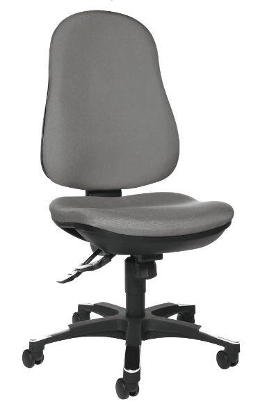Der Topstar Trend SY 10 Drehstuhl vereint Komfort und Funktionalität in einem modernen Design. Mit seiner stufenlosen Sitzhöhenverstellung durch den Toplift kannst du die ideale Sitzhöhe für dich einstellen und so eine ergonomische Sitzposition erreichen. Die Sicherheitsdoppelrollen sind speziell für Teppichböden konzipiert und sorgen für eine sichere und stabile Nutzung. Dieser Drehstuhl ist für ein maximales Gewicht von bis zu 110 kg ausgelegt und eignet sich optimal für Personen mit einer maximalen Körpergröße von 1,92 cm. Er bietet eine Nutzungsdauer von bis zu 8 Stunden pro Tag, was ihn ideal für den Einsatz im Büro oder Homeoffice macht. Die hohe Rückenlehne ist ergonomisch geformt und unterstützt den Lendenwirbelbereich, was zu einer gesunden Sitzhaltung beiträgt. Ein weiteres Highlight des Topstar Trend SY 10 ist der Spezial-Bandscheibensitz, der eine optimale Abstützung im Beckenbereich gewährleistet. Dies ist besonders wichtig für langes Sitzen, da er dazu beiträgt, Verspannungen und Rückenschmerzen vorzubeugen. Die Punktsynchronmechanik ermöglicht eine individuelle Verstellung der Sitz- und Rückenlehnenneigung, sodass du die Position ganz nach deinen Bedürfnissen anpassen kannst. Der Drehstuhl ist in einem ansprechenden Grau gehalten und besteht aus robustem Polypropylen. Das Kunststoff-Fußkreuz sorgt für zusätzliche Stabilität und Langlebigkeit. Der Topstar Trend SY 10 Drehstuhl ist die perfekte Wahl für alle, die Wert auf ergonomisches Sitzen und stilvolles Design legen.Technische Daten