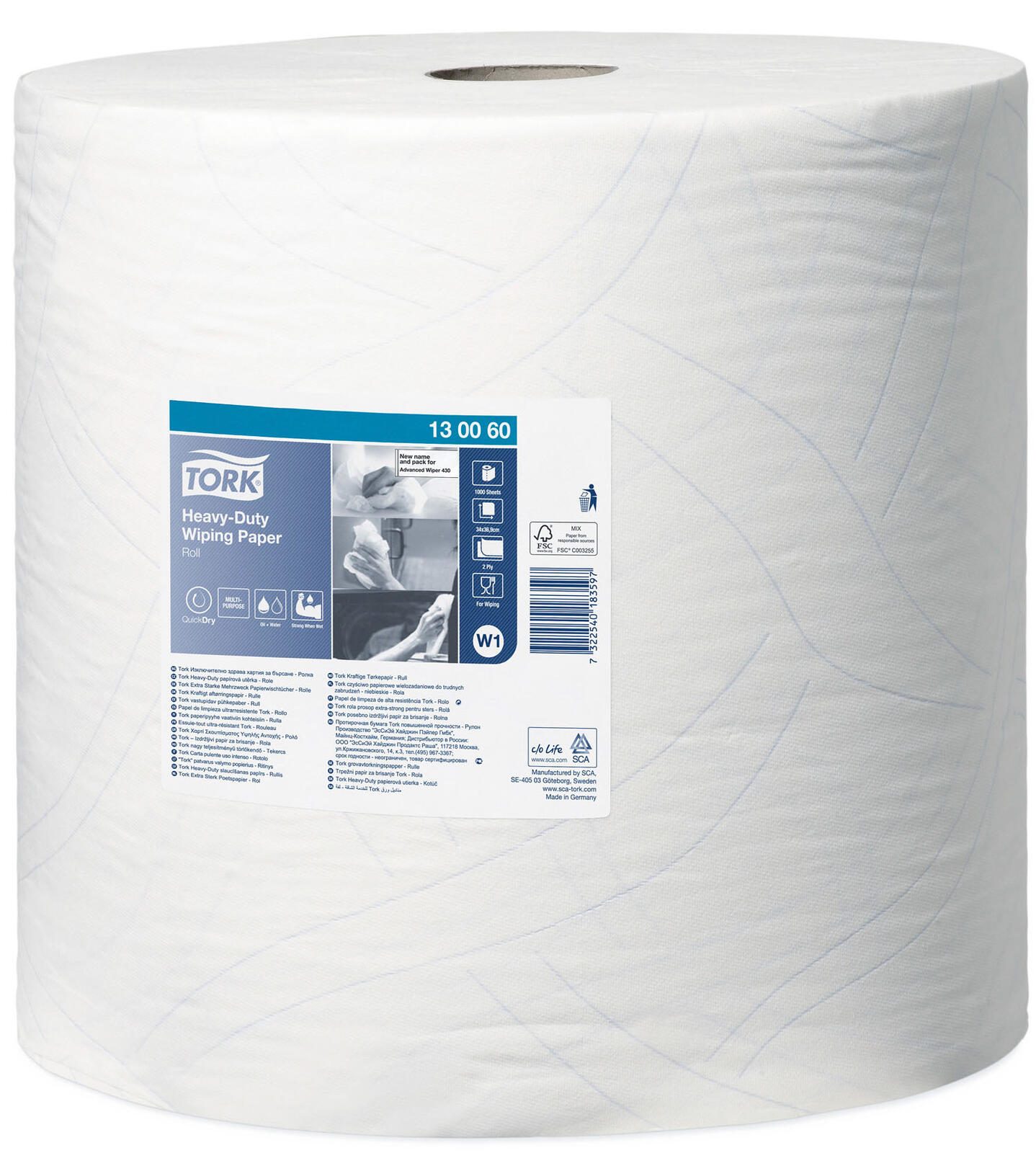 Die TORK Putztuchrolle 2-lagig hochweiß ist die ideale Lösung für alle, die Wert auf Qualität und Effizienz legen. Hergestellt aus hochwertigem Zellstoff und Recyclingpapier, bietet diese Putztuchrolle eine umweltfreundliche Option, ohne Kompromisse bei der Leistung einzugehen. Mit ihrer strahlend weißen Farbe fügt sie sich harmonisch in jede Umgebung ein und sorgt für einen professionellen Eindruck. Dank der praktischen 2-lagigen Struktur gewährleistet die TORK Putztuchrolle eine hohe Saugfähigkeit und Robustheit, was sie perfekt für verschiedene Reinigungseinsätze macht. Egal, ob du in der Gastronomie, im Gesundheitswesen oder in der Industrie tätig bist, diese Putztücher sind vielseitig einsetzbar und bieten dir die nötige Unterstützung bei der täglichen Arbeit. Mit einem Blattmaß von 34 cm x 36,9 cm und insgesamt 1.000 Blättern pro Rolle hast du ausreichend Material zur Hand, um auch größere Flächen effizient zu reinigen. Die TORK Putztuchrolle gehört zur Serienbezeichnung Advanced 430 und ist speziell für das Spendersystem W1 konzipiert. Dies ermöglicht eine einfache Handhabung und einen schnellen Zugriff auf die Tücher, was die Effizienz deiner Reinigungsarbeiten erheblich steigert. Die Premium-Papierqualität sorgt dafür, dass du ein zuverlässiges Produkt erhältst, das sowohl für trockene als auch für nasse Anwendungen geeignet ist. Insgesamt vereint die TORK Putztuchrolle 2-lagig hochweiß Funktionalität, Nachhaltigkeit und Benutzerfreundlichkeit. Sie ist die perfekte Wahl für alle, die eine leistungsstarke und umweltbewusste Reinigungslösung suchen.Technische Daten
