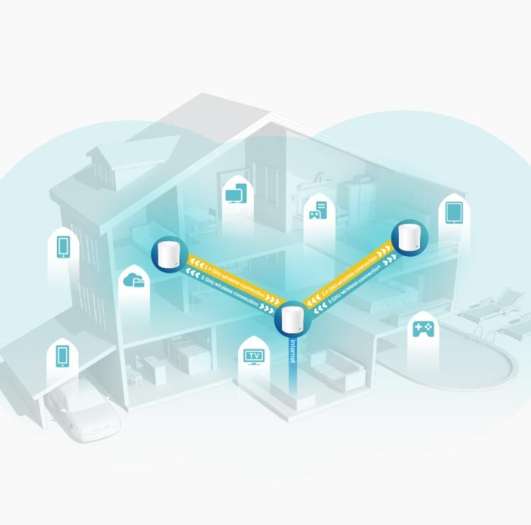 Die Decos arbeiten zusammen, um ein einheitliches WLAN-Netzwerk zu bilden. Ihr mobiles Gerät wird immer automatisch zur Deco-Einheit mit der höchsten Geschwindigkeit verbunden, während Sie sich durch Ihr Zuhause bewegen.