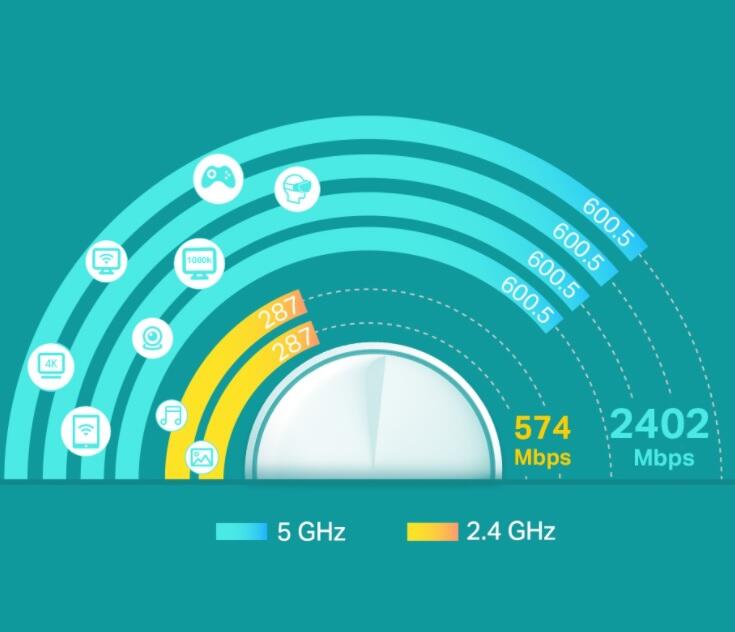- Schnelle Dualband Übertragungsgeschwindigkeit bis zu 2402Mbit/s (5GHz) +574Mbit/s (2.4GHz)