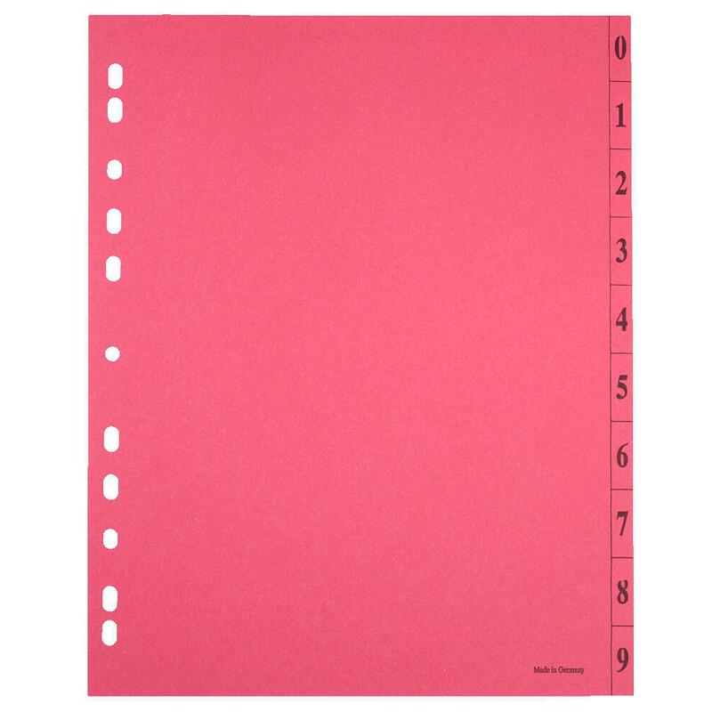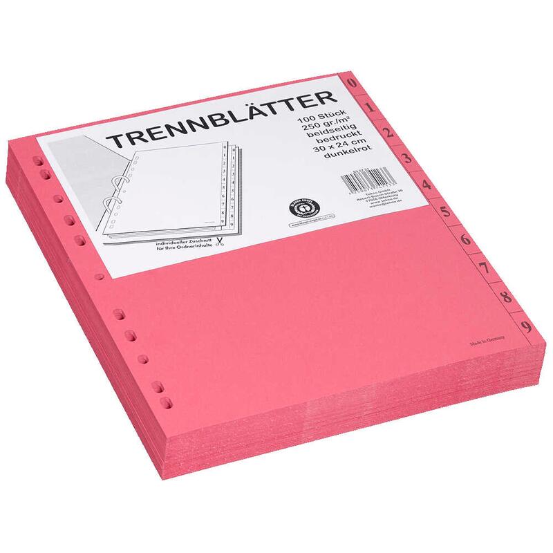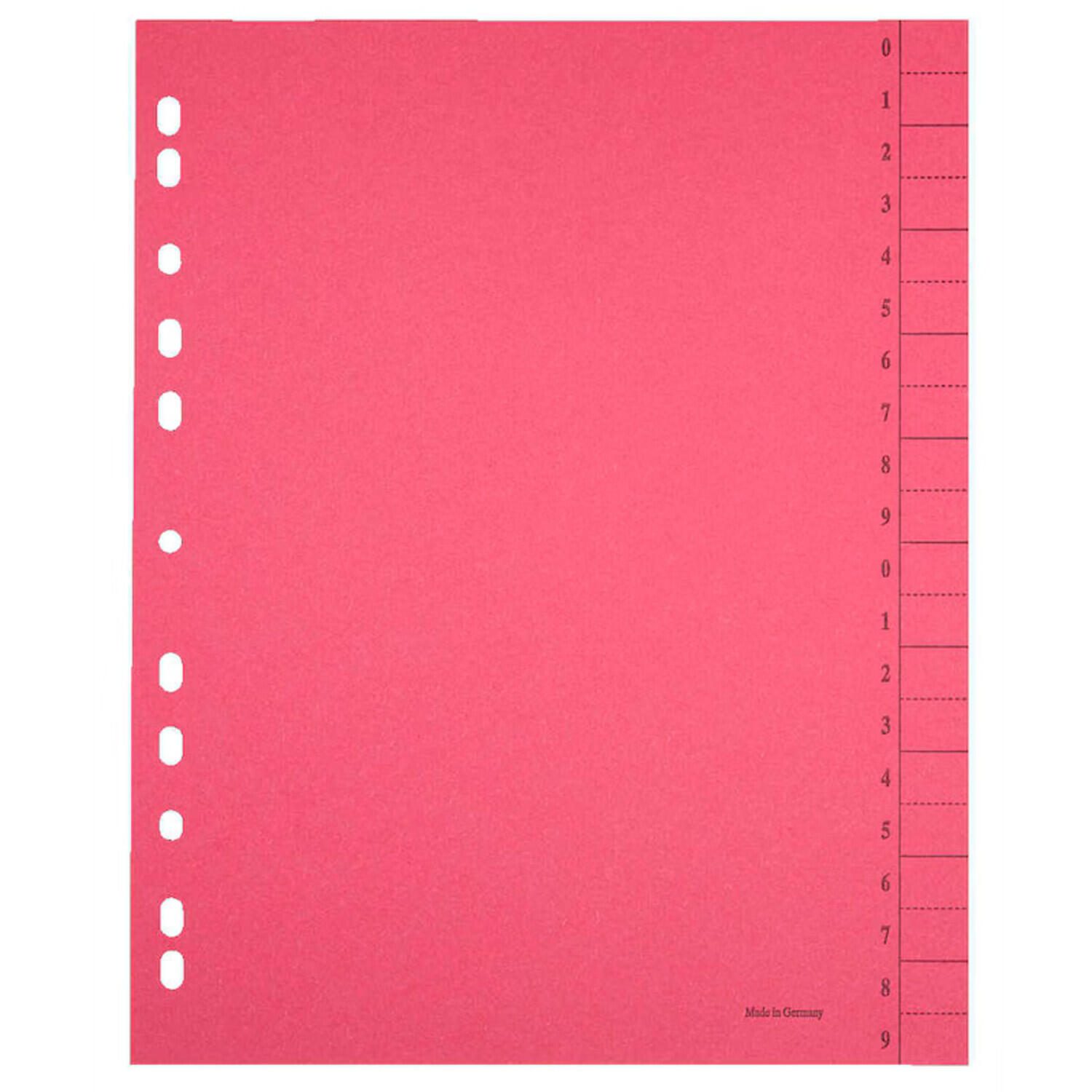 Trennblätter DIN A4 0-9 dunkelrot, 250 g/qm, 100 Blatt