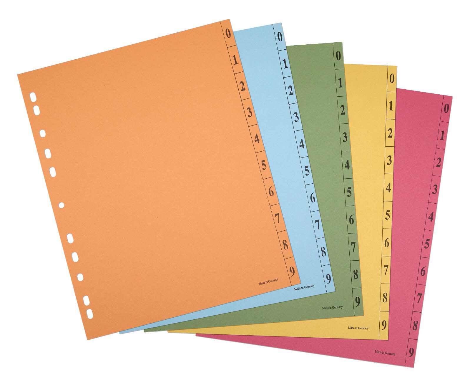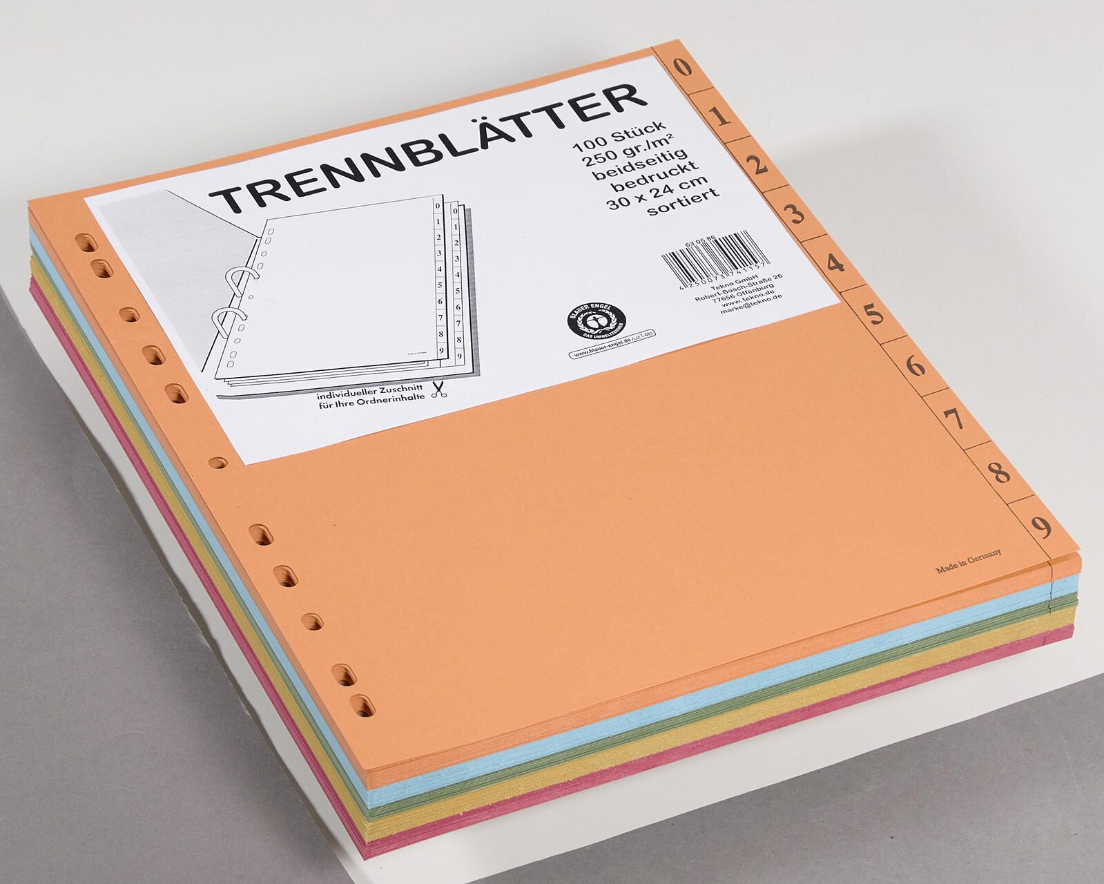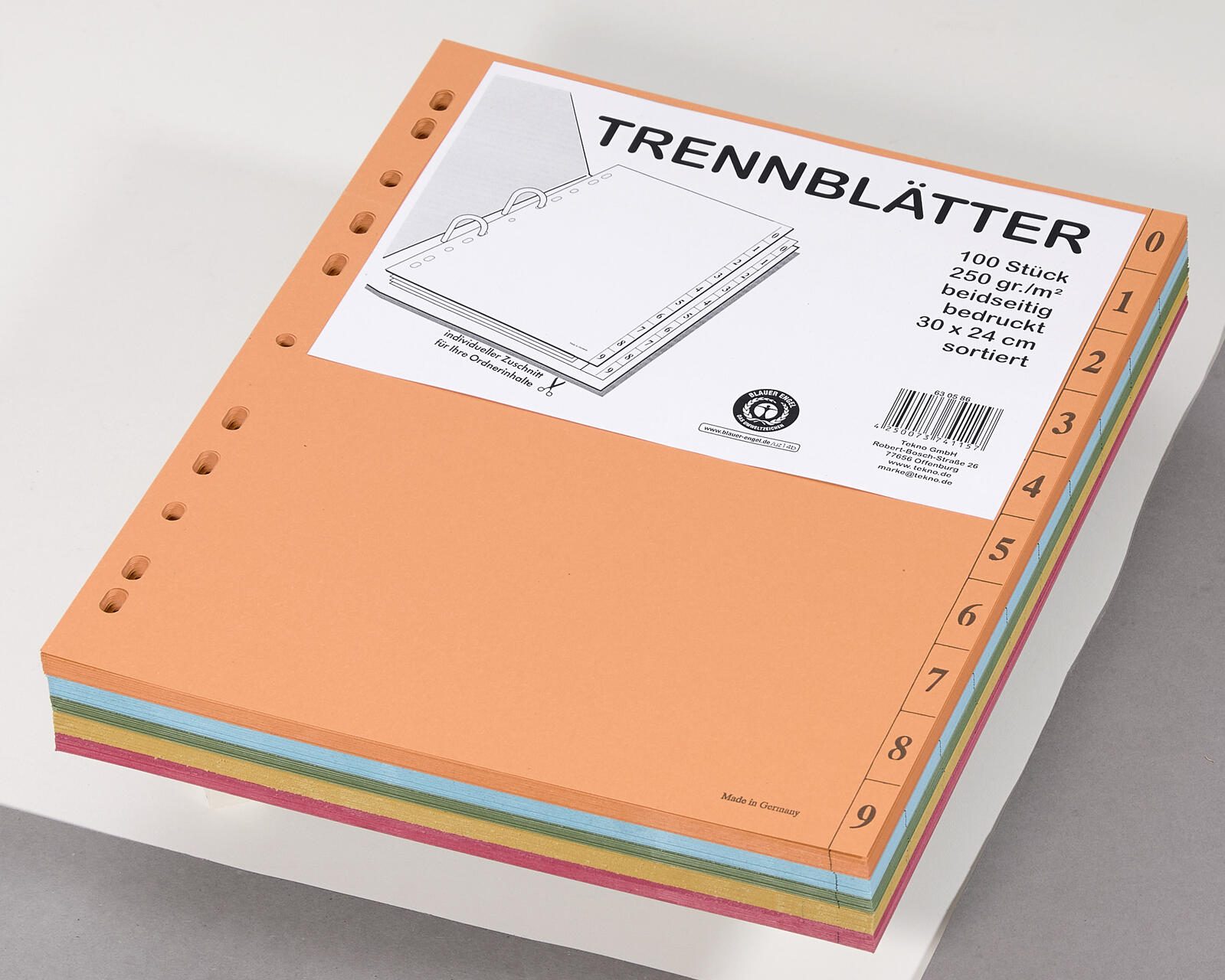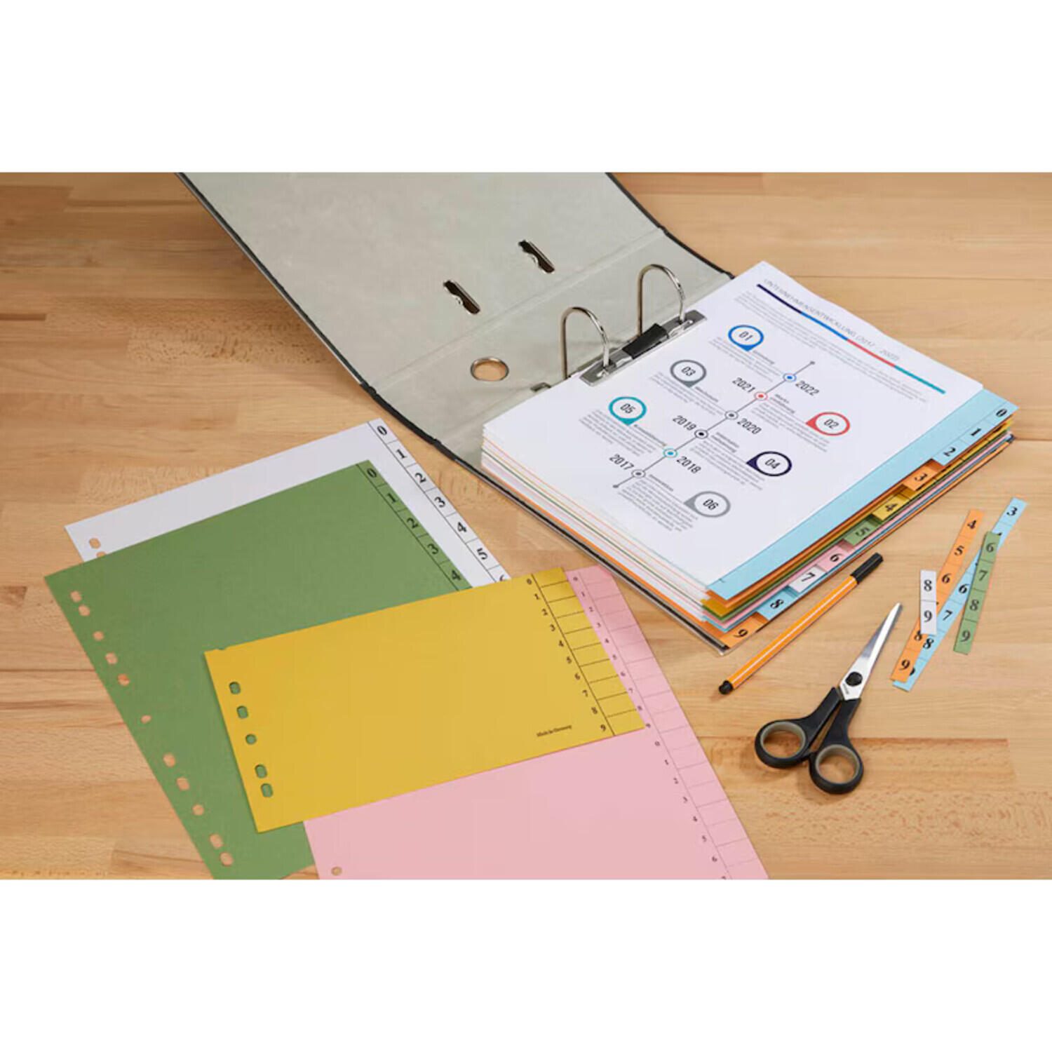 Trennblätter DIN A4 0-9 farbsortiert, 250 g/qm, 100 Blatt