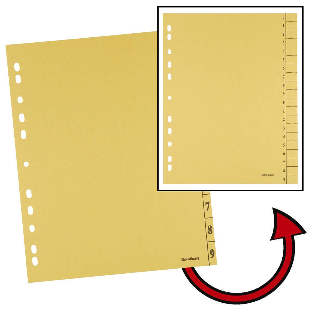 Trennblätter DIN A4 0-9 gelb, 250 g/qm, 100 St.