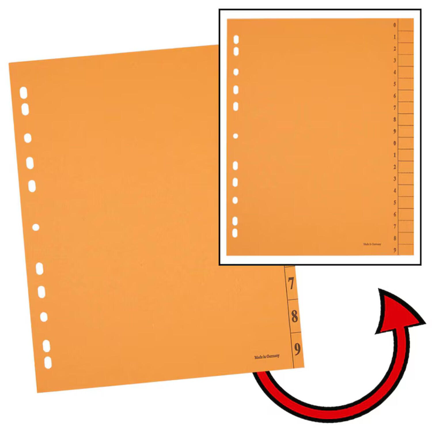 Trennblätter DIN A4 0-9 orange, 250 g/qm, 100 St.