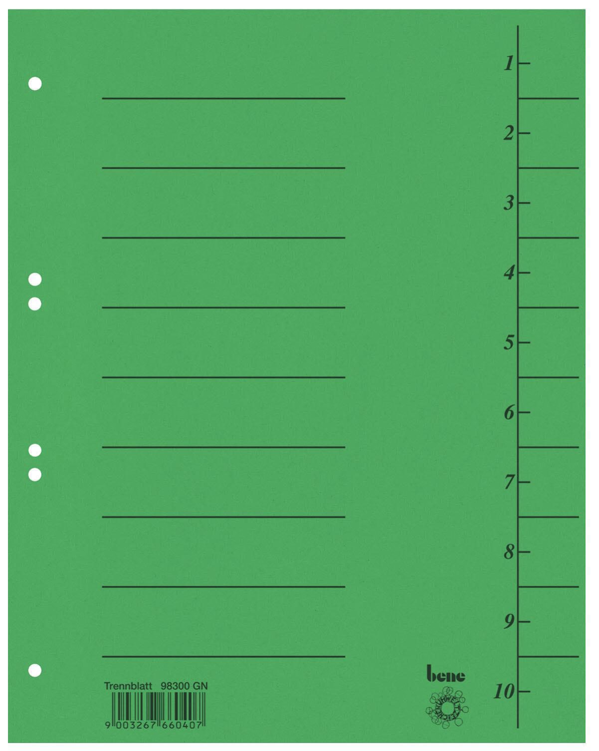 bene Trennblätter DIN A4 210 g/m² grün