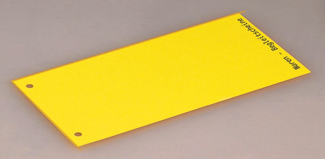 Die dots Trennstreifen in leuchtendem Gelb sind die ideale Lösung, um Ordnung und Übersichtlichkeit in deinen Unterlagen zu schaffen. Mit einem Papiergewicht von 130 g/m² bieten diese Trennstreifen nicht nur eine hohe Stabilität, sondern auch eine ansprechende Haptik, die sie zu einem unverzichtbaren Hilfsmittel in jedem Büro oder Zuhause macht. Die rechteckige Form mit den Maßen 23,0 x 10,5 cm ermöglicht es dir, die Trennstreifen mühelos in Aktenordnern oder Mappen zu verwenden. Dank der praktischen 2-fach-Lochung lassen sich die Streifen einfach und schnell einfügen, sodass du deine Dokumente nach Themen oder Projekten sortieren kannst. Die lebendige gelbe Farbe sorgt dafür, dass wichtige Informationen sofort ins Auge fallen und erleichtert das schnelle Finden von benötigten Unterlagen. Diese Trennstreifen aus hochwertigem Karton sind nicht nur funktional, sondern auch ästhetisch ansprechend und tragen dazu bei, dass dein Arbeitsplatz ordentlich und strukturiert wirkt. Mit einer Packung von 100 Stück bist du bestens ausgestattet, um deine Dokumente effizient zu organisieren. Die dots Trennstreifen sind ein unverzichtbares Zubehör für Studierende, Berufstätige und alle, die Wert auf eine gut strukturierte Ablage legen. Vertraue auf die Qualität von dots und erlebe, wie einfach es ist, Ordnung zu halten.Technische Daten