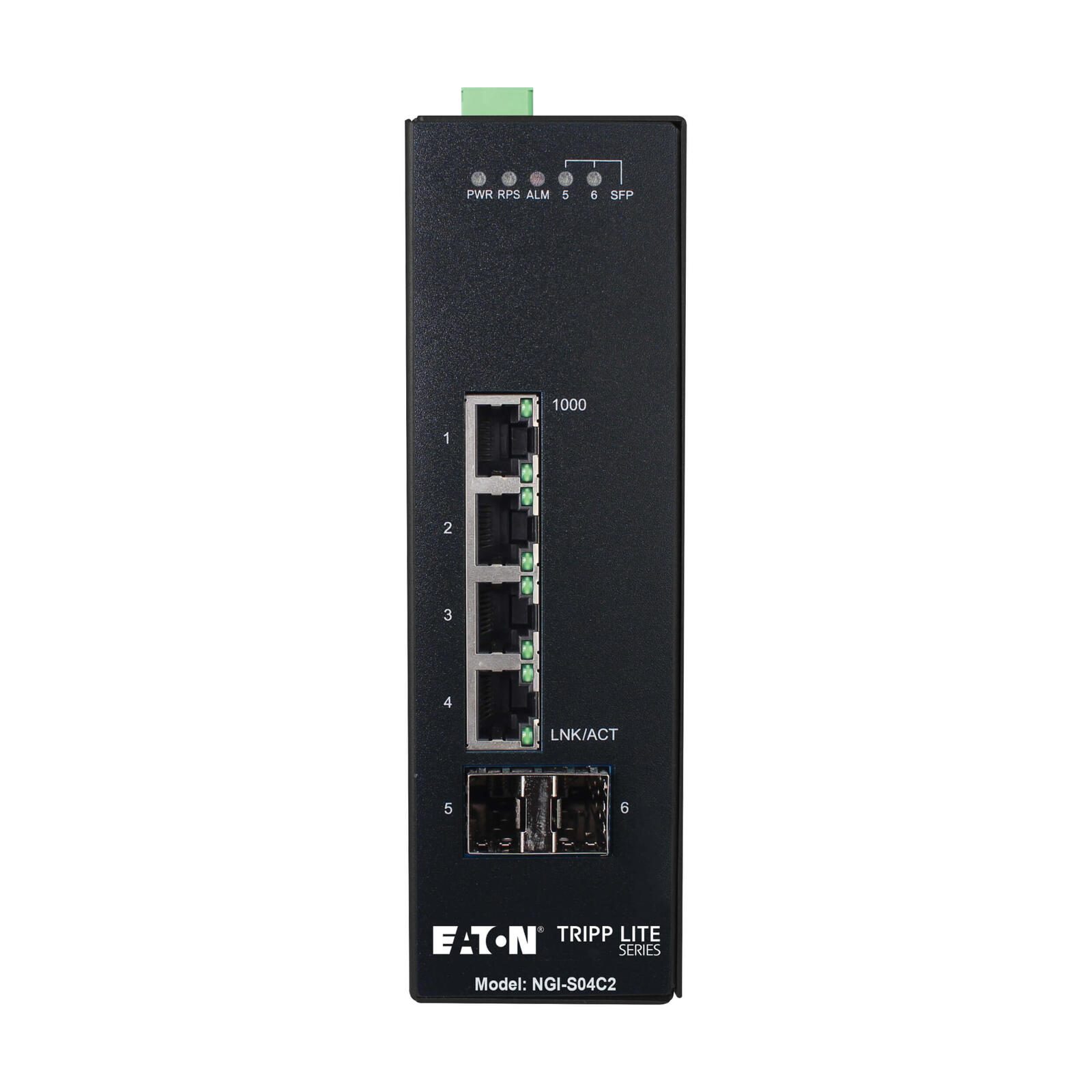 Eaton Tripp Lite Series 4-Port Lite Managed Industrial Gigabit Ethernet Switch 10/100/1000 Mbps, 2 GbE SFP Slots