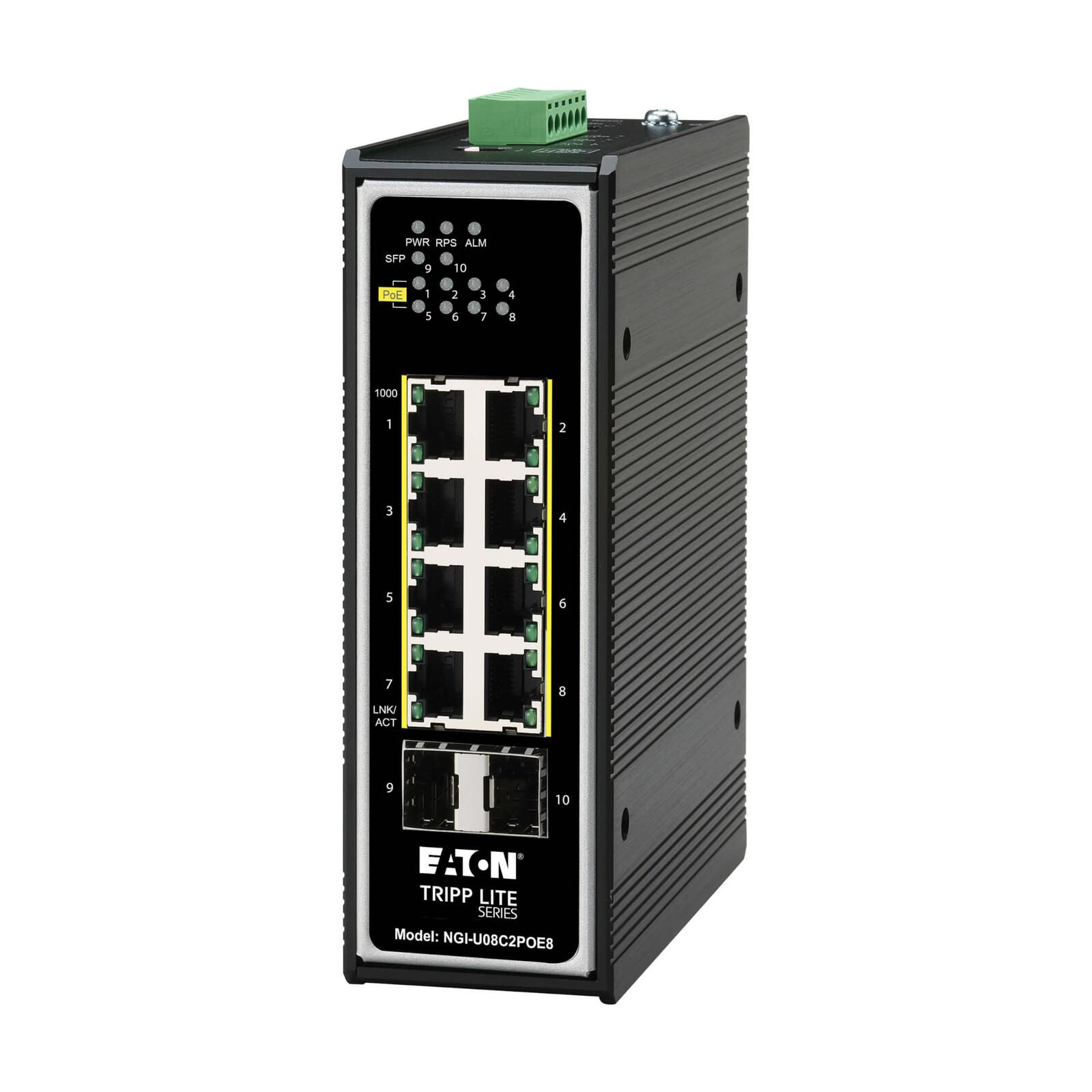 Eaton Tripp Lite Series 8-Port Unmanaged Industrial Gigabit Ethernet Switch 10/100/1000 Mbps, PoE+ 30W, 2 GbE SFP Slots