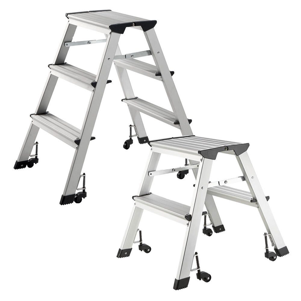 Der ALCO Klapptritt mit zwei Stufen ist die ideale Lösung für alle, die in ihrem Zuhause oder im Büro eine praktische und stabile Unterstützung benötigen. Mit einer Höhe von 44 cm bietet dieser Tritt eine komfortable Erreichbarkeit für Regale, Schränke und andere höher gelegene Bereiche. Das elegante Design in Aluminium verleiht dem Klapptritt nicht nur ein modernes Aussehen, sondern sorgt auch für Langlebigkeit und Stabilität. Hergestellt aus hochwertigem Aluminium, ist der ALCO Klapptritt leicht und dennoch robust. Mit einem Gewicht von nur 38,0 x 50,0 cm im zusammengeklappten Zustand lässt er sich mühelos verstauen und transportieren. Die maximale Belastbarkeit von 150 kg garantiert Sicherheit und Zuverlässigkeit, sodass du dich beim Arbeiten oder Erreichen von Gegenständen jederzeit auf diesen Tritt verlassen kannst. Die zwei Trittstufen bieten dir den notwendigen Halt, während die Plattform eine sichere Standfläche schafft. Dies macht den ALCO Klapptritt nicht nur für den privaten Gebrauch, sondern auch für professionelle Anwendungen geeignet. Die durchdachte Konstruktion ohne Haltebügel ermöglicht ein schnelles und einfaches Auf- und Absteigen. Der ALCO Klapptritt ist nicht nur funktional, sondern auch ein stilvolles Accessoire, das sich nahtlos in jede Umgebung einfügt. Ob beim Putzen, beim Dekorieren oder bei handwerklichen Arbeiten – dieser Klapptritt wird schnell zu deinem unverzichtbaren Begleiter. Die Kombination aus durchdachtem Design, hochwertigem Material und praktischer Funktionalität machen den ALCO Klapptritt zu einer ausgezeichneten Wahl für alle, die Wert auf Qualität und Sicherheit legen.Technische Daten