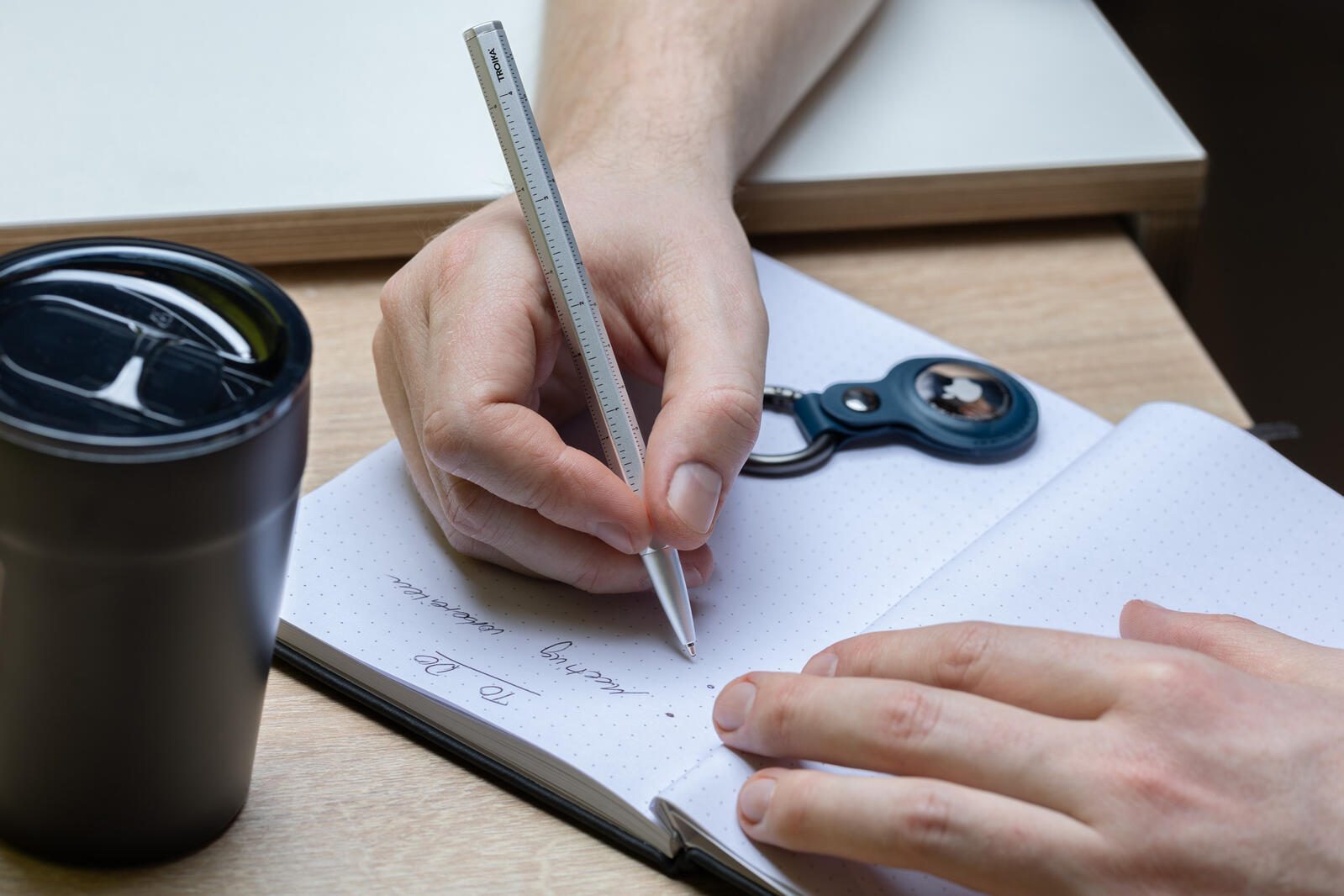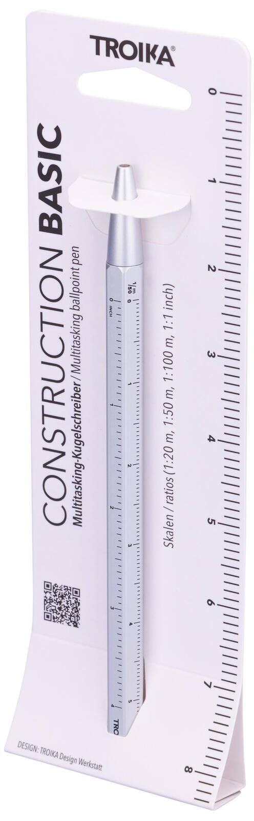 - Multitasking-Kugelschreiber mit schwarzer D1 Mine, Zentimeter-/Zoll-Lineal, 1:20/1:50 Skala, einfacher Minenwechsel