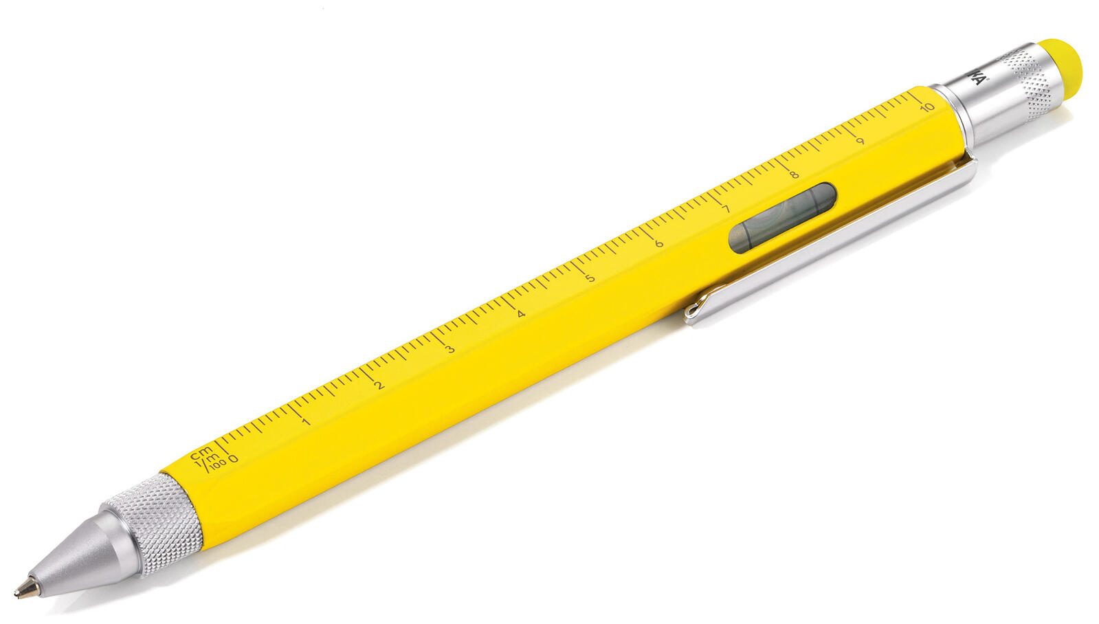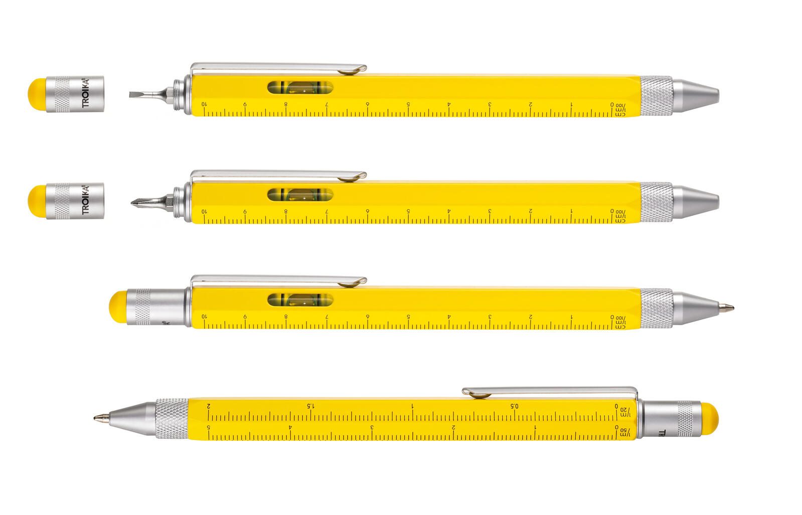 - Multitasking-Kugelschreiber mit verschiedenen Skalen, Zentimeter- und Zoll-Lineal, 1:20 m und 1:50 m Skala, Schlitz-/Kreuzschraubendreher, Stylus und Wasserwaage (Durchmesser: 10 mm), Schreiblänge 1600 bis 1800 m