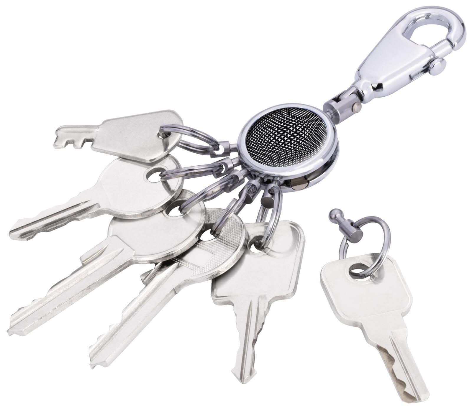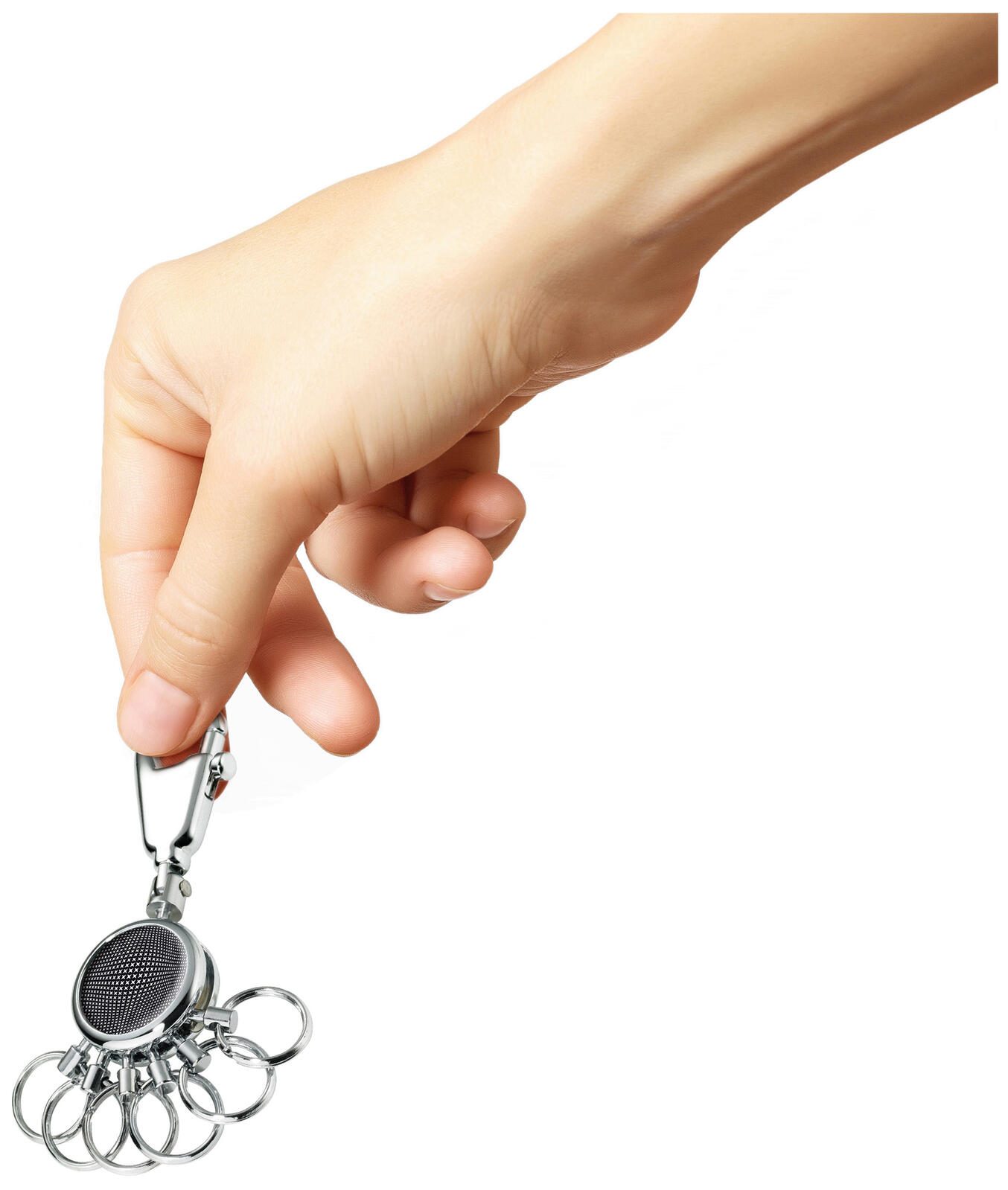 - Ausführung: Karabinerhaken mit 6 auswechselbaren Ringen