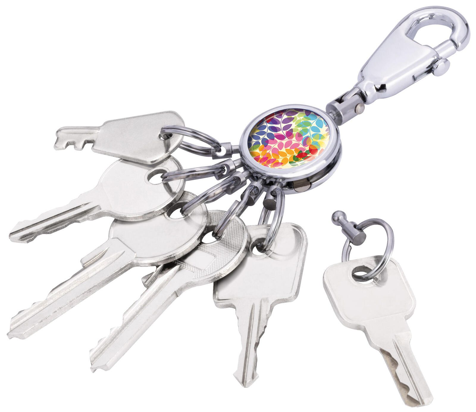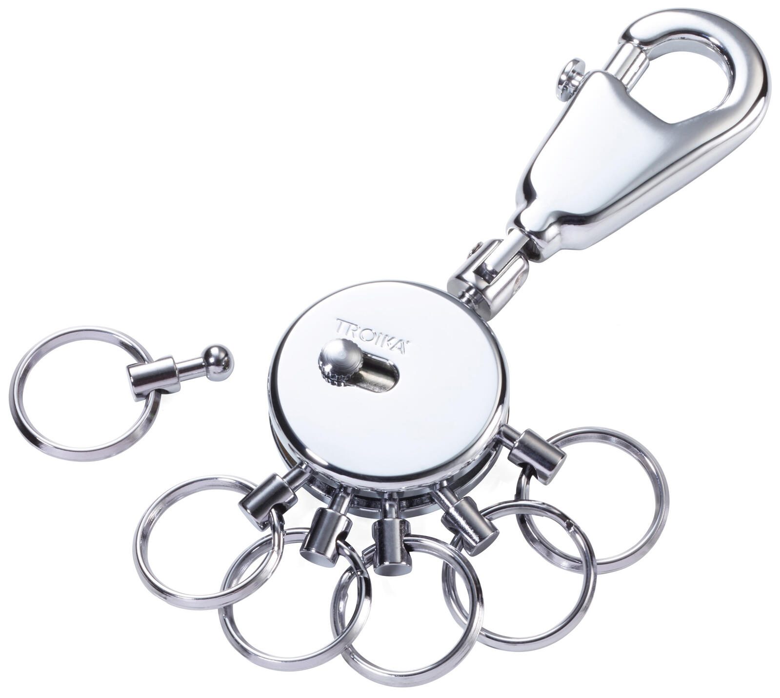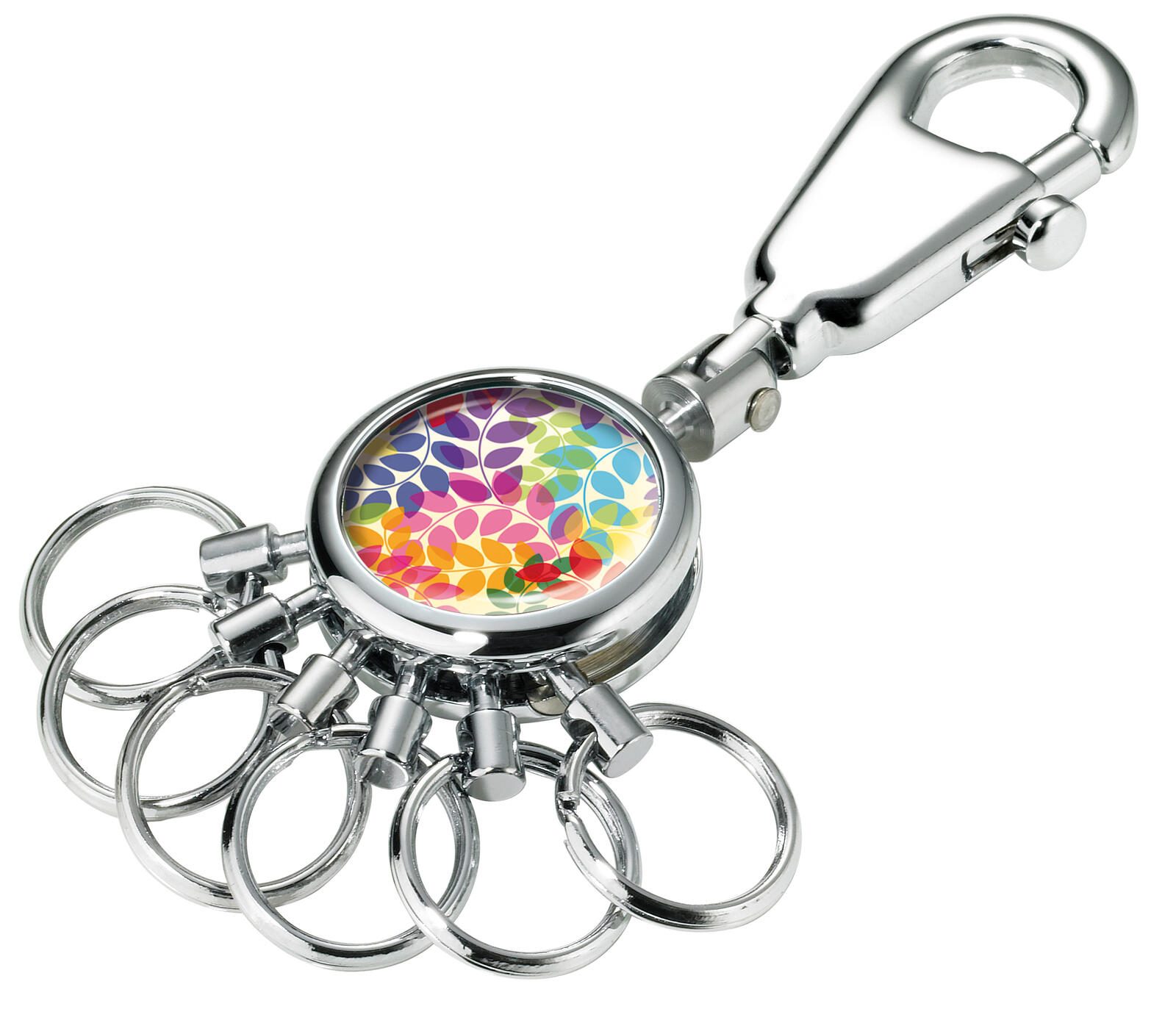 - Ausführung: Karabinerhaken mit 6 auswechselbaren Ringen