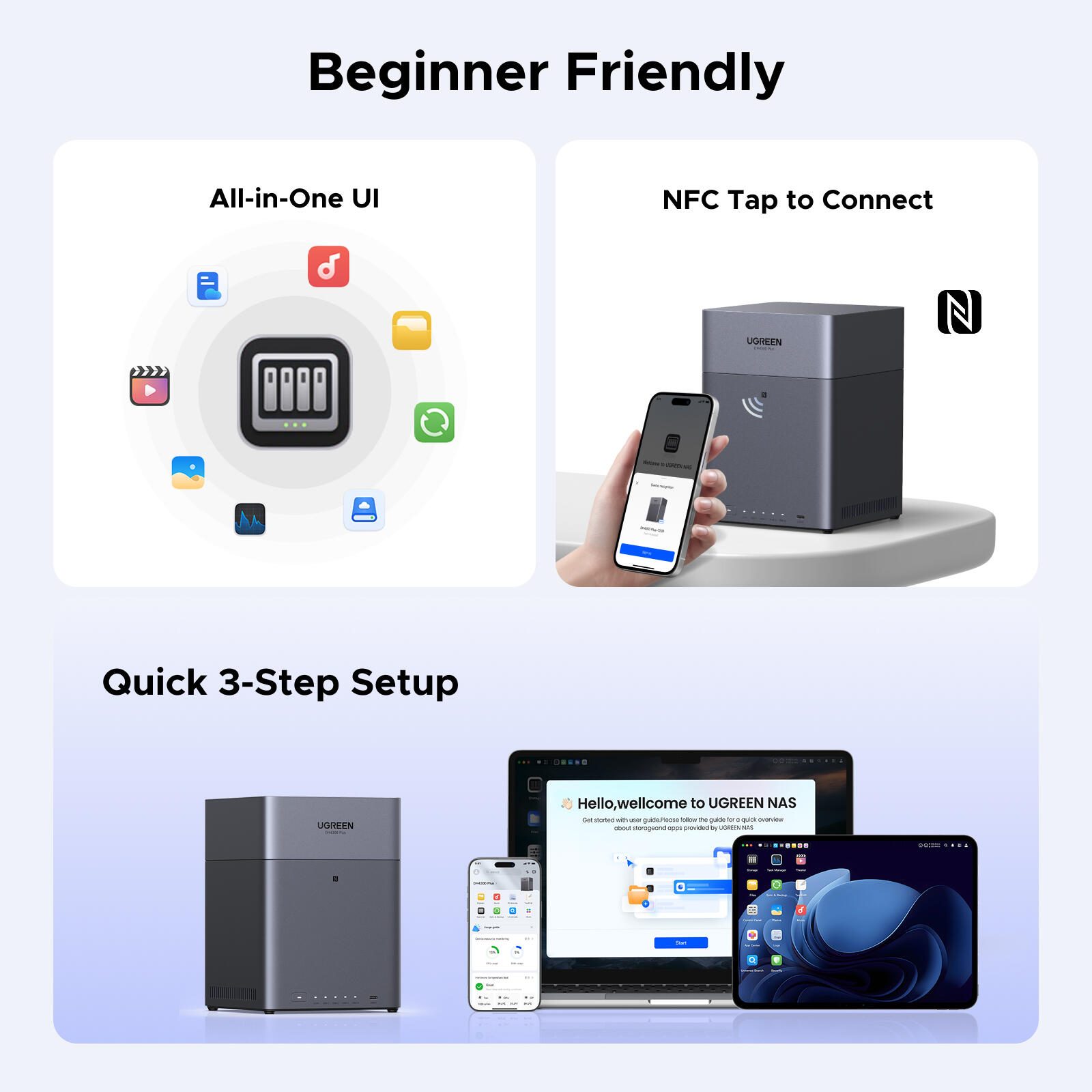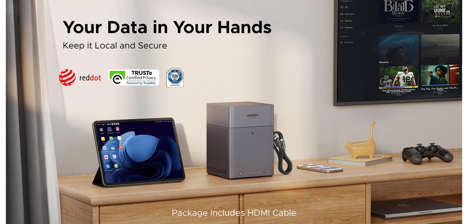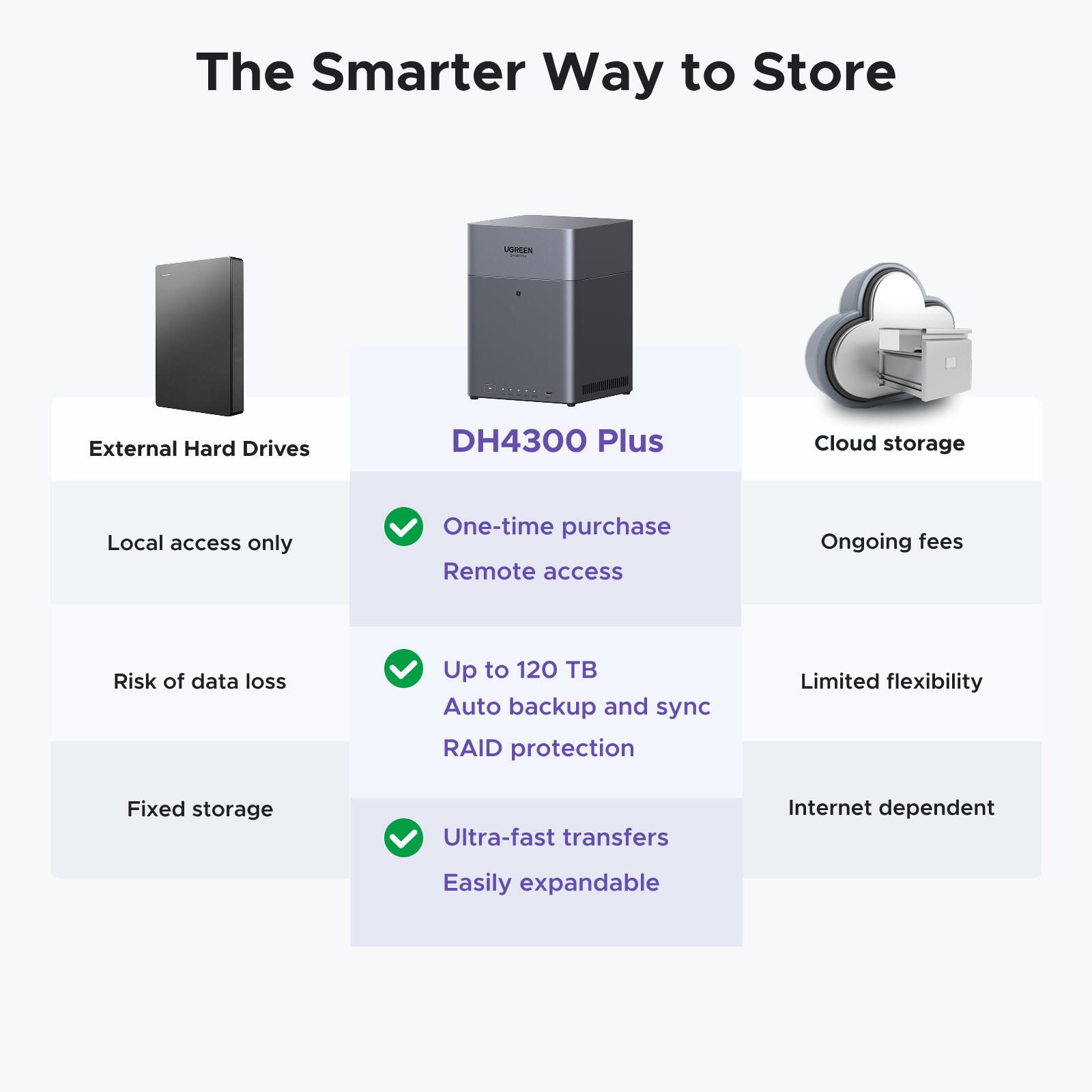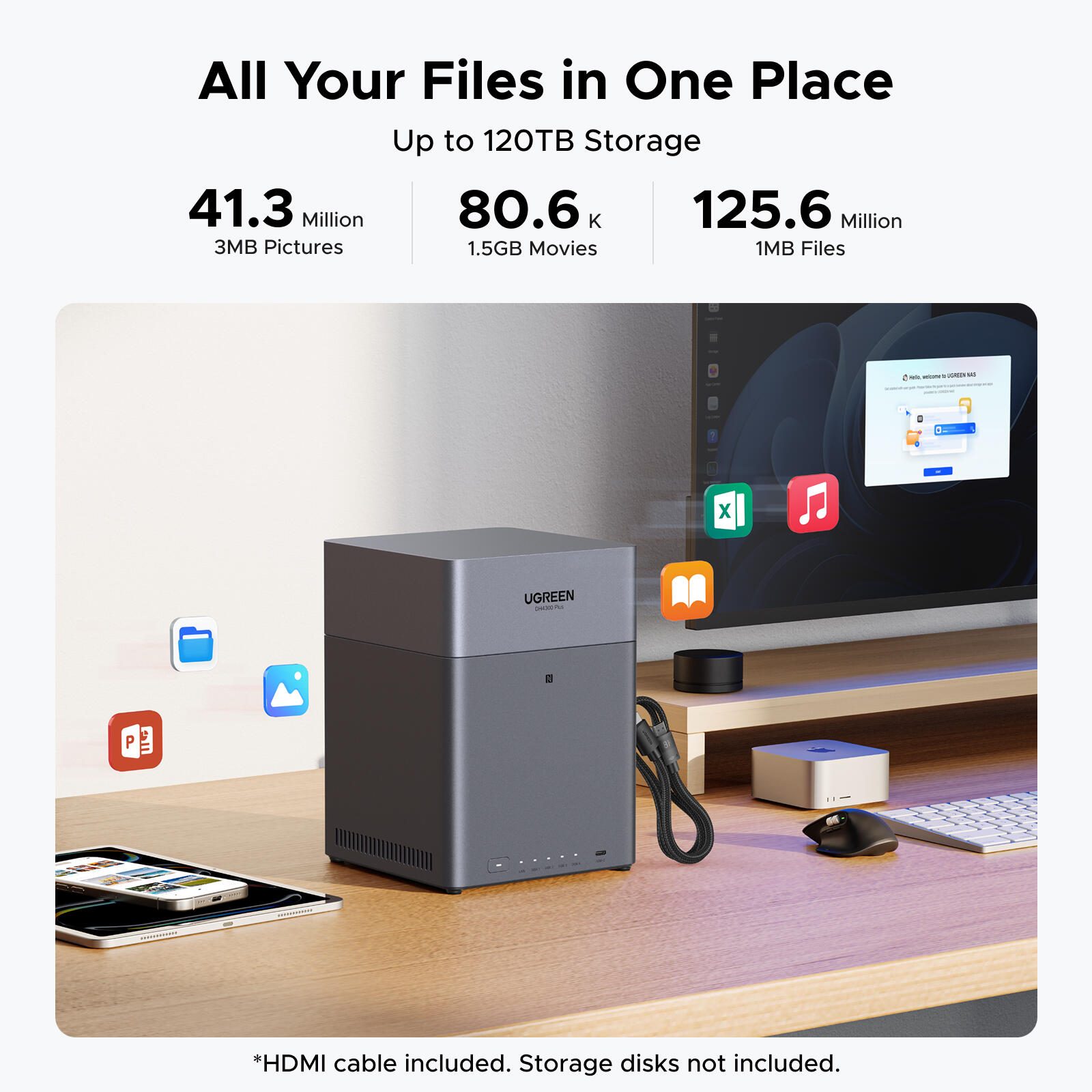 Der DH4300 Plus bietet einfachen, zuverlässigen Speicher mit hoher Kapazität für Familien und den privaten Gebrauch. Mit seiner leistungsstarken Hardware, einer benutzerfreundlichen Oberfläche und einem mitgelieferten 1 Meter langen HDMI-Kabel ist er eine kluge Wahl für NAS-Einsteiger, die eine leistungsstarke und dennoch leicht zugängliche Speicherlösung für zu Hause suchen.