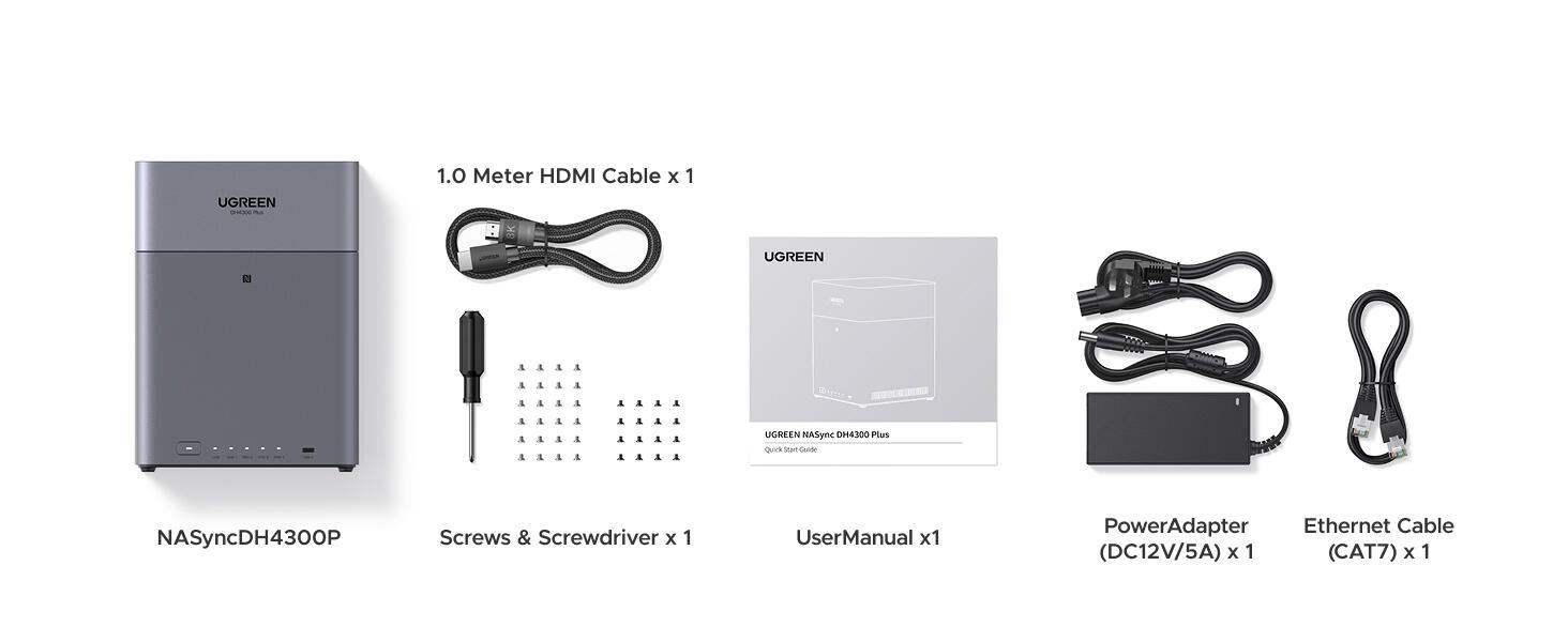UGREEN NASync DH 4300 Plus Bundle 4 Einschübe NAS-Server Leergehäuse (85660) Inklusive 1 m langem HDMI-Kabel