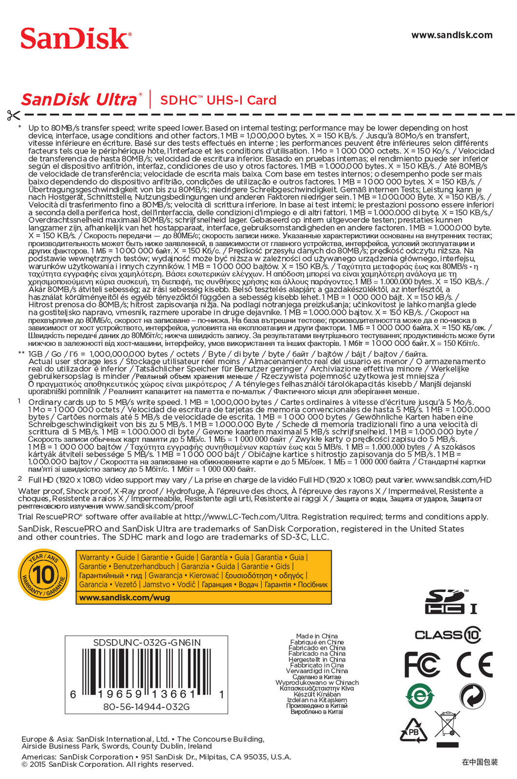 Speichern Sie mit SanDisk Ultra SDXC und SDHC UHS-I Speicherkarten viele Fotos und Full HD-Videos – und übertragen Sie sie schnell auf Ihren Computer. Diese Speicherkarten sind ideal für digitale Kompaktkameras und Camcorder im mittleren Preissegment, außerdem bieten sie Lesegeschwindigkeiten von bis zu 80MB/s. Sie sind doppelt so schnell wie normale SDHC-Karten und ermöglichen das Aufnehmen von Bildern und schnelles Übertragen der Dateien. SanDisk Ultra SDXC und SDHC UHS-I Speicherkarten bieten bis zu 128GB Speicherkapazität und sind beständig gegen Wasser, extreme Temperaturen, Röntgenstrahlen und Erschütterungen. Auf einem Etikett können Sie vermerken, was auf der Karte gespeichert ist.