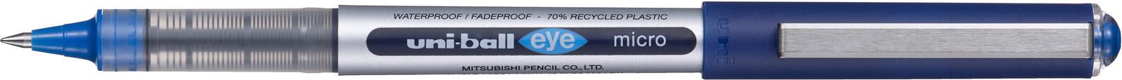 Der uni-ball eye micro UB-150 Tintenroller in silber mit einer feinen Strichstärke von 0,2 mm bietet Ihnen ein außergewöhnliches Schreiberlebnis. Die wasserbasierte Pigmenttinte in einem ansprechenden Blau sorgt für lebendige und präzise Schriftzüge, die sowohl für Rechts- als auch für Linkshänder geeignet sind. Dank seiner wischfesten und lichtbeständigen Eigenschaften ist dieser Tintenroller ideal für Dokumente, die eine lange Haltbarkeit erfordern. Die permanente und dokumentenechte Tinte garantiert, dass Ihre Notizen und Zeichnungen über lange Zeit hinweg lesbar bleiben. Der Tintenroller ist mit einer Schutzklappe ausgestattet, die die Spitze vor dem Austrocknen schützt, und einem praktischen Clip, der eine einfache Befestigung an Notizbüchern oder Taschen ermöglicht. Der Schaft aus Polypropylen sorgt für eine angenehme Haptik und eine einfache Handhabung. Die innovative uni Super Ink Technologie, kombiniert mit der Kugel aus Wolframkarbid, sorgt für ein gleichmäßiges und flüssiges Schreibverhalten. Das Füllstandsfenster ermöglicht Ihnen zudem eine einfache Überwachung des Tintenstandes, sodass Sie immer rechtzeitig einen neuen Tintenroller zur Hand haben. Mit seiner eleganten silbernen Gehäusefarbe und dem ansprechenden Design ist der uni-ball eye micro nicht nur funktional, sondern auch ein stilvolles Accessoire für Schule, Büro oder kreative Projekte. Erleben Sie die Vorteile eines Schreibgeräts, das sowohl in der Anwendung als auch in der Optik überzeugt.Technische Daten