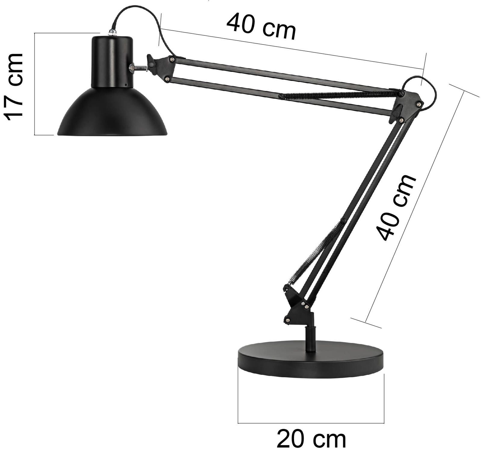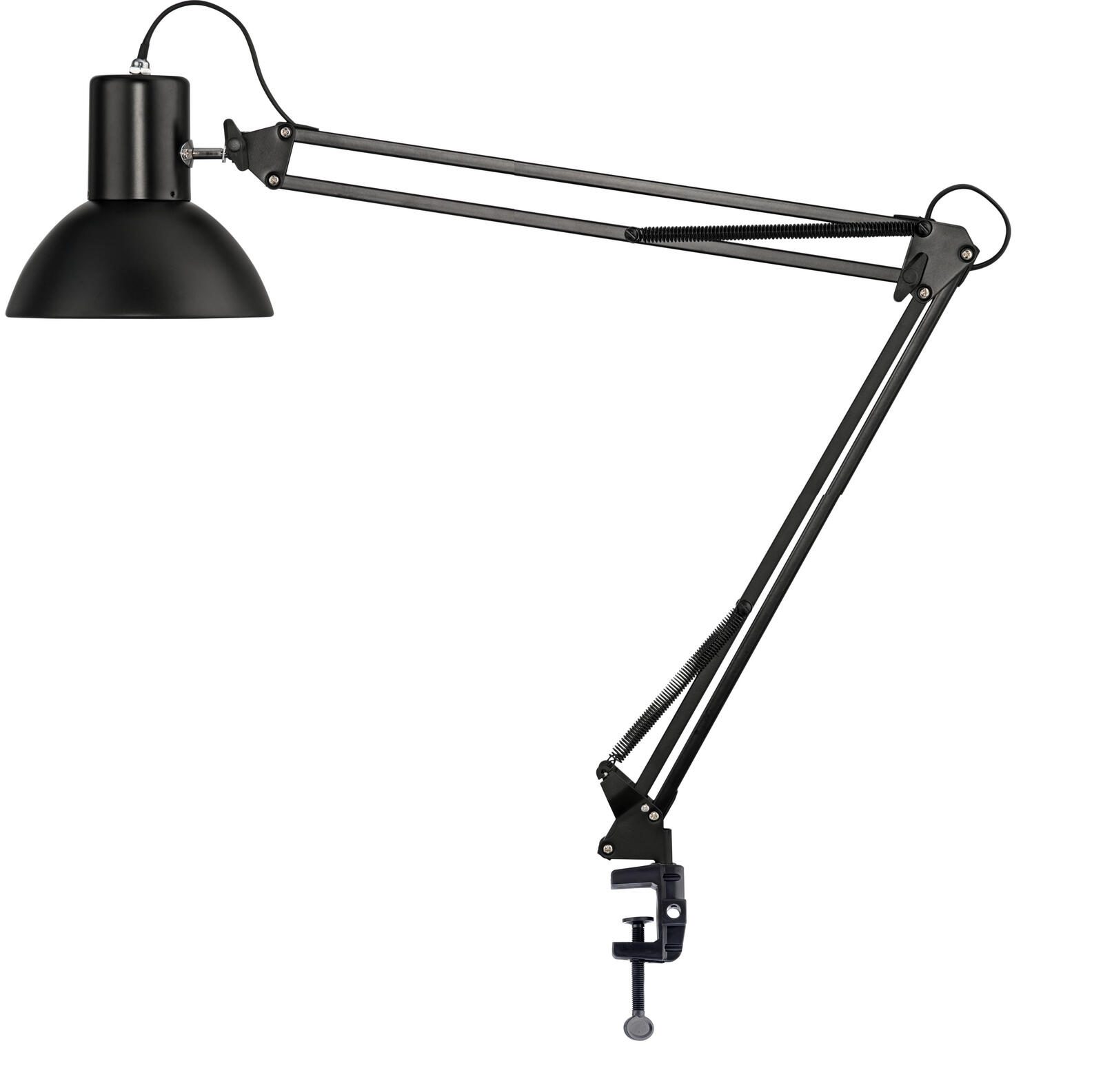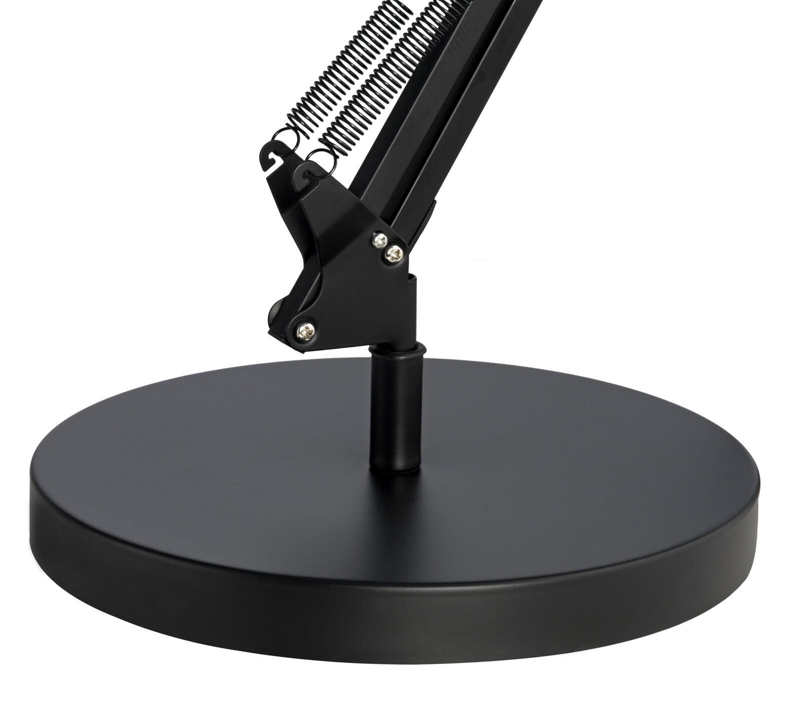 Die Lampe ist sowohl mit einem Tischklemmenfuß als auch mit einem Standfuß erhältlich, was eine einfache und stabile Befestigung an Ihrem Arbeitsplatz garantiert. Besonders praktisch ist die Schwenkbarkeit der Leuchte, die es Ihnen erlaubt, das Licht gezielt zu positionieren und so optimale Lichtverhältnisse für Ihre Arbeit zu schaffen. Das schlichte, schwarze Design fügt sich harmonisch in unterschiedliche Einrichtungsstile ein und sorgt für eine angenehme Atmosphäre am Schreibtisch.