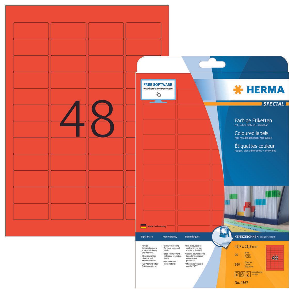 HERMA Etiketten 4367 rot 45,7 x 21,2 mm