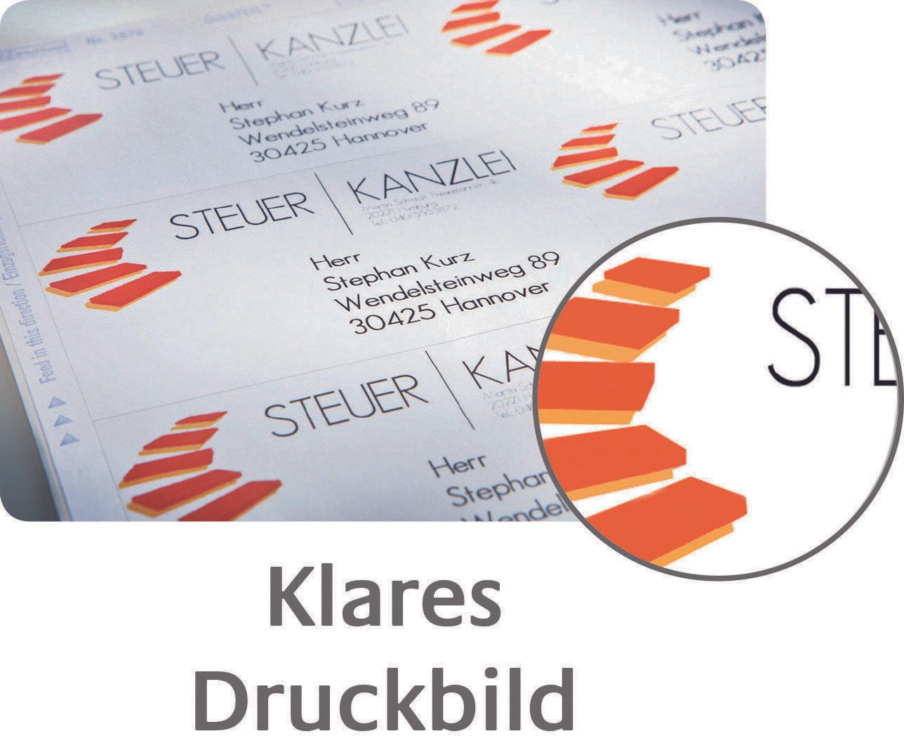 Die selbstklebenden Etiketten haften zuverlässig auf verschiedenen Oberflächen und sind dabei einfach zu handhaben. Dank der blickdichten Eigenschaften sind sie ideal für Anwendungen, bei denen eine klare und präzise Beschriftung erforderlich ist. Die Etiketten besitzen keine abgerundeten Ecken und sind ohne Rand, was dir ermöglicht, den gesamten Platz optimal auszunutzen.