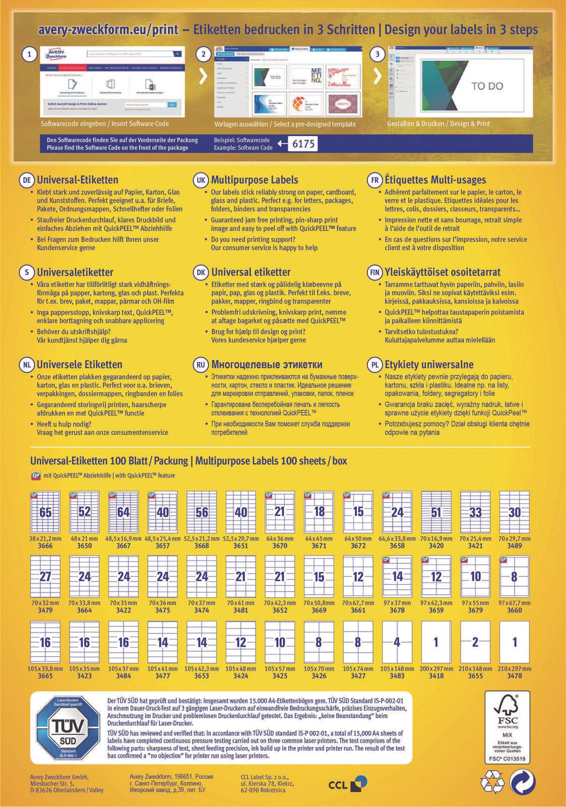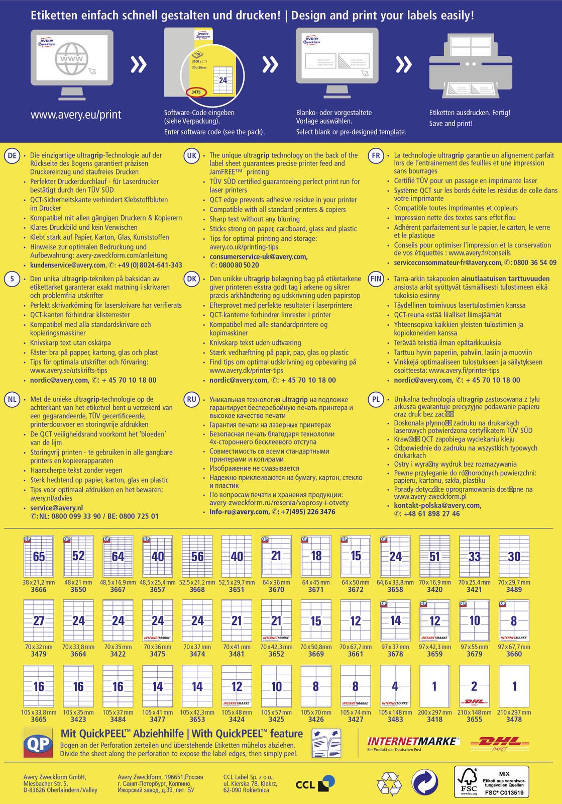 Hergestellt aus hochwertigem, chlorfrei gebleichtem Papier, sind die Etiketten nicht nur umweltfreundlich, sondern auch lösemittelfrei und holzfrei. Die matte Oberfläche sorgt dafür, dass die Etiketten professionell aussehen und sich hervorragend für den Druck mit Laser-, Inkjet- und Kopiergeräten eignen. Dies ermöglicht dir eine hohe Flexibilität bei der Gestaltung deiner Etiketten. Ob für Adressetiketten, Produktkennzeichnungen oder organisatorische Zwecke, die AVERY Etiketten sind die perfekte Wahl.