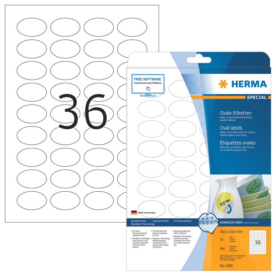 HERMA Special - Etiketten - matt - 900 Etikett(en) - 40,6 x 25,4 mm (oval)
