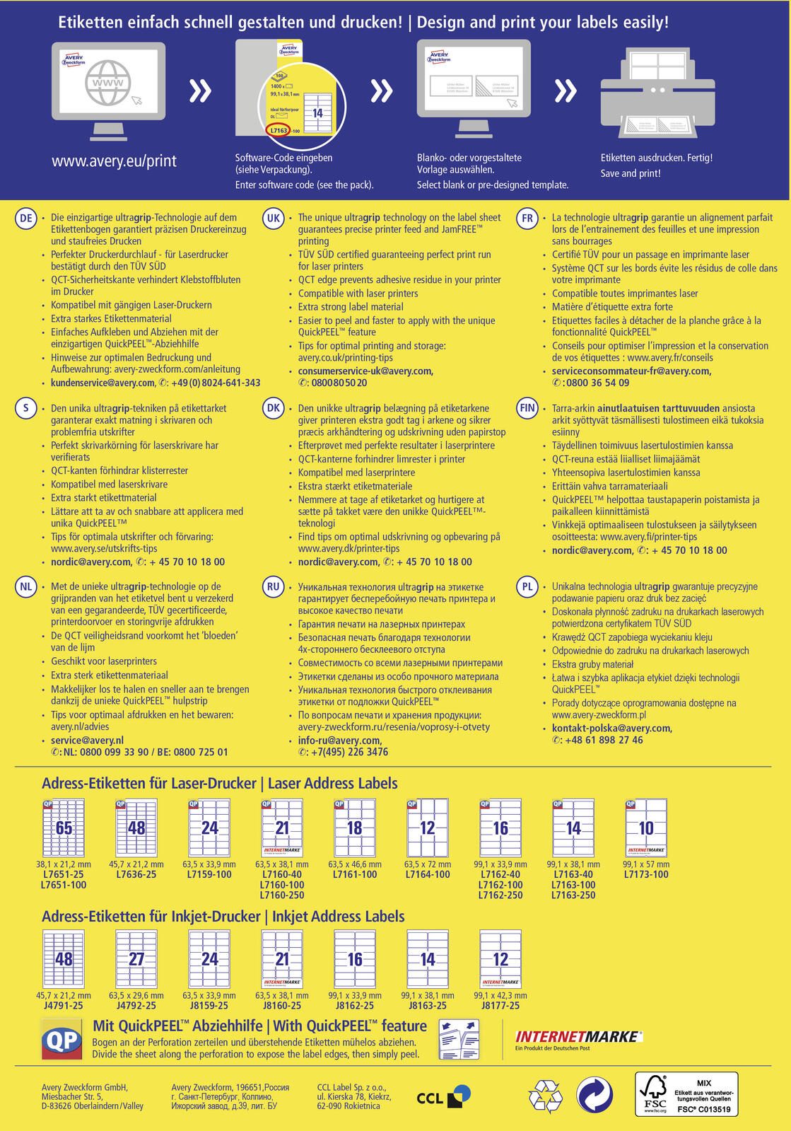 AVERY Zweckform Etiketten L7159-100 weiß 63,5 x 33,9 mm