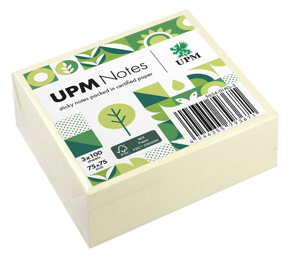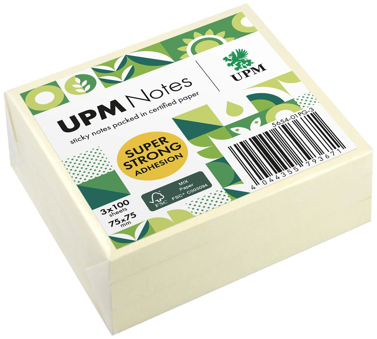 UPM Notes Haftnotizen, gelb, 100 Blatt 1 Pack = 3 Blöcke
