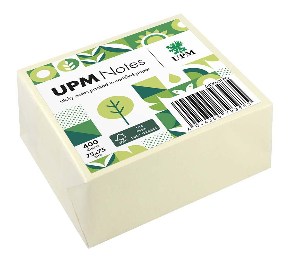 Die UPM Notes Haftnotizen sind praktische Zettel in einem handlichen Blockformat. Sie bestehen aus Papier und sind in einem auffälligen Gelbton gehalten, der eine gute Sichtbarkeit auf verschiedenen Oberflächen gewährleistet. Mit einer Größe von 7,5 x 7,5 cm eignen sich die Haftnotizen ideal für kurze Notizen, Erinnerungen oder Markierungen.
