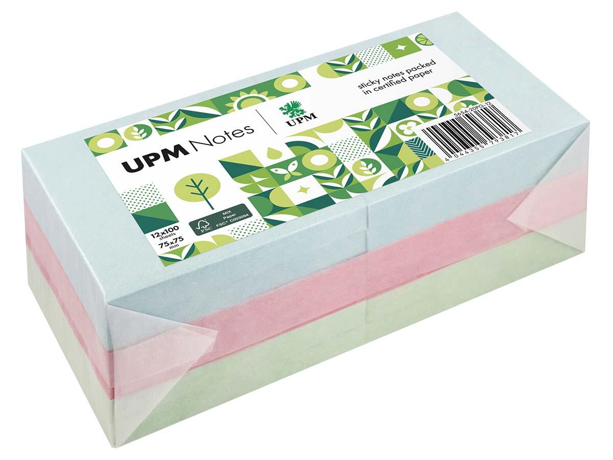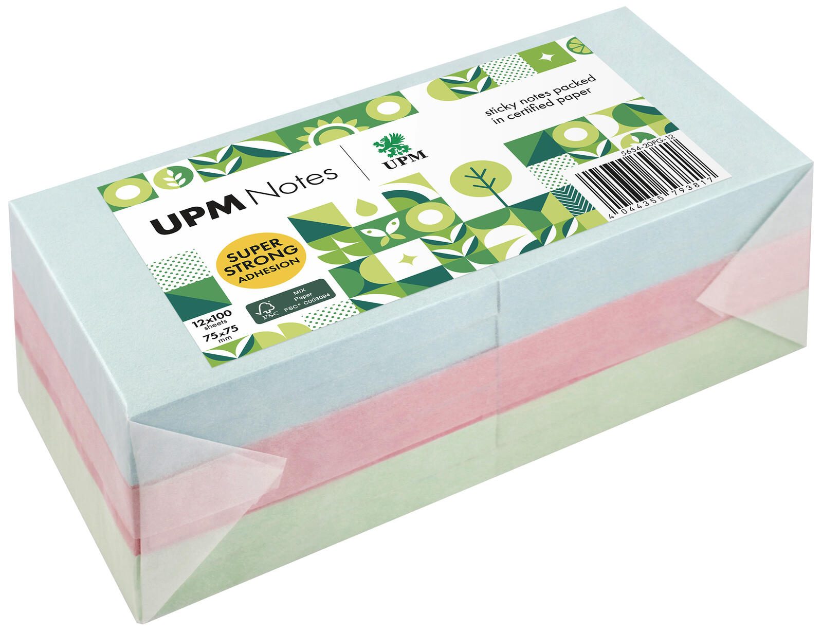 UPM Notes Haftnotizen Pastellmix, farbsortiert, 100 Blatt 1 Pack = 12 Blöcke