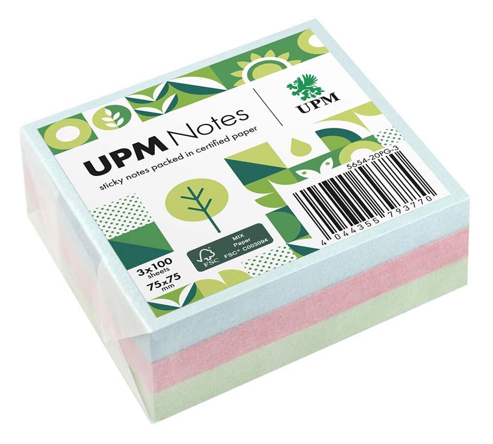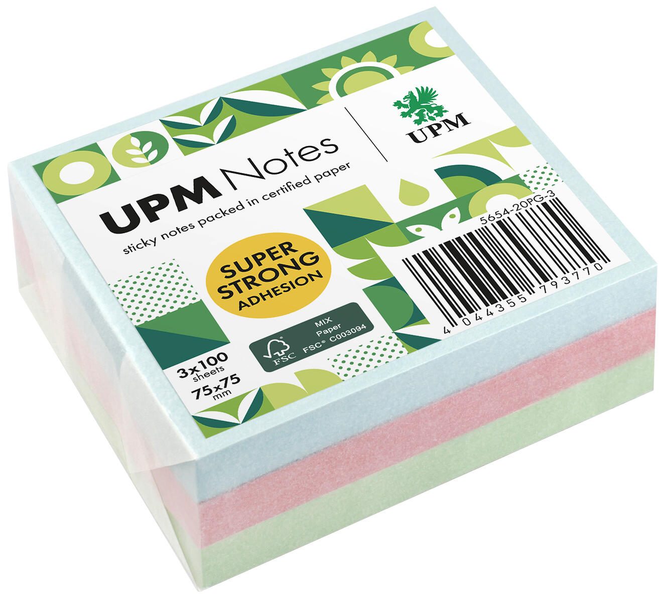 UPM Notes Haftnotizen Pastellmix, farbsortiert, 100 Blatt 1 Pack = 3 Blöcke