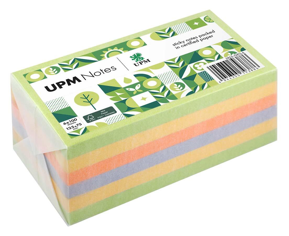 UPM Notes Haftnotizen Springmix, farbsortiert, 100 Blatt 1 Pack = 6 Blöcke