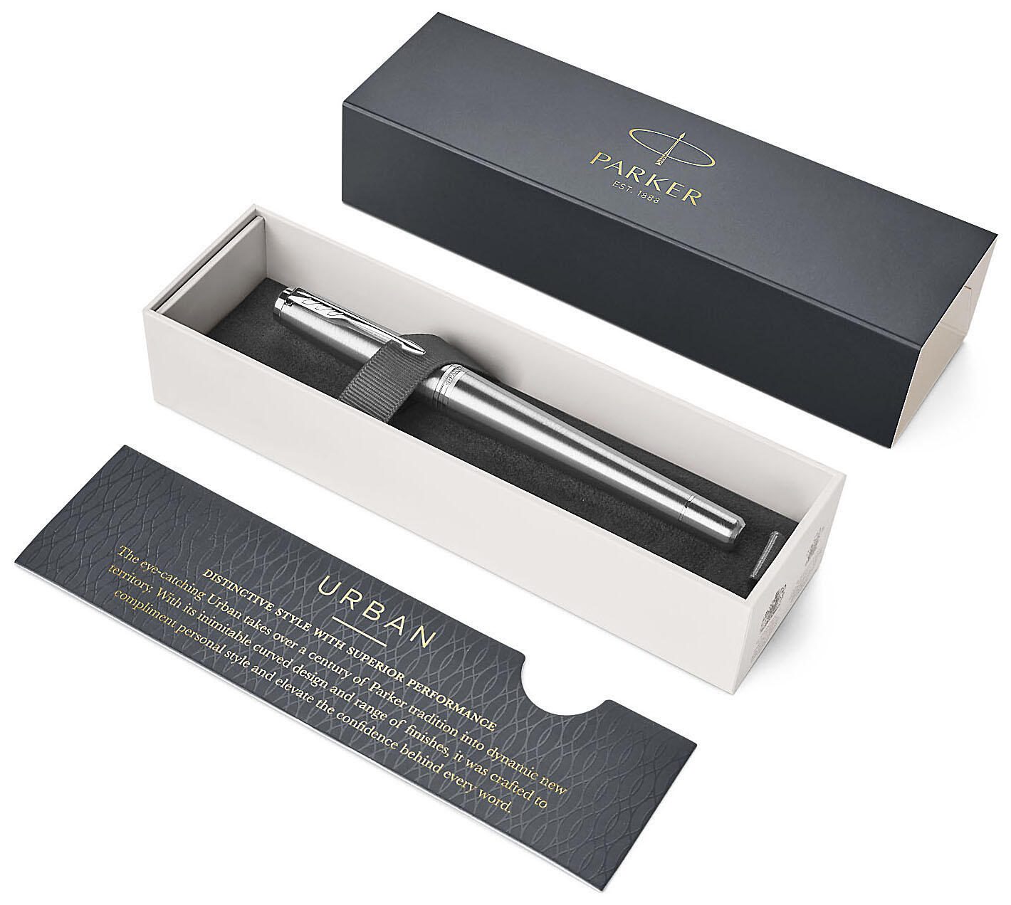 Der URBAN Füller Metro Metallic Patronenfüller in Silber ist ein eleganter Schulfüller, der höchsten Schreibkomfort bietet. Hergestellt von PARKER, einem renommierten Hersteller von Schreibwaren, zeichnet sich dieser Füller durch sein edles Design und seine hochwertige Verarbeitung aus. Dieser silberne Füllfederhalter ist nicht nur ein Blickfang, sondern auch äußerst funktional. Er eignet sich sowohl für Rechts- als auch Linkshänder und liegt dank seines runden Griffs angenehm in der Hand. Die Lieferung erfolgt inklusive einer praktischen Großraum-Tintenpatrone in Blau, sodass du direkt mit dem Schreiben loslegen kannst. Der URBAN Füller Metro Metallic Patronenfüller zeichnet sich nicht nur durch sein ansprechendes Äußeres aus, sondern auch durch seine Nachfüllbarkeit, die für eine lange Lebensdauer und nachhaltige Nutzung sorgt. Dank seiner Passform für Großraum-Tintenpatronen ist das Nachfüllen ein Kinderspiel und ermöglicht eine reibungslose Schreiberfahrung. Genieße das Schreiben in einem stilvollen und komfortablen Ambiente mit dem URBAN Füller Metro Metallic Patronenfüller in Silber. Hol dir jetzt diesen exklusiven Füllfederhalter und entdecke die Welt des Schreibens auf eine neue Art und Weise.Technische Daten