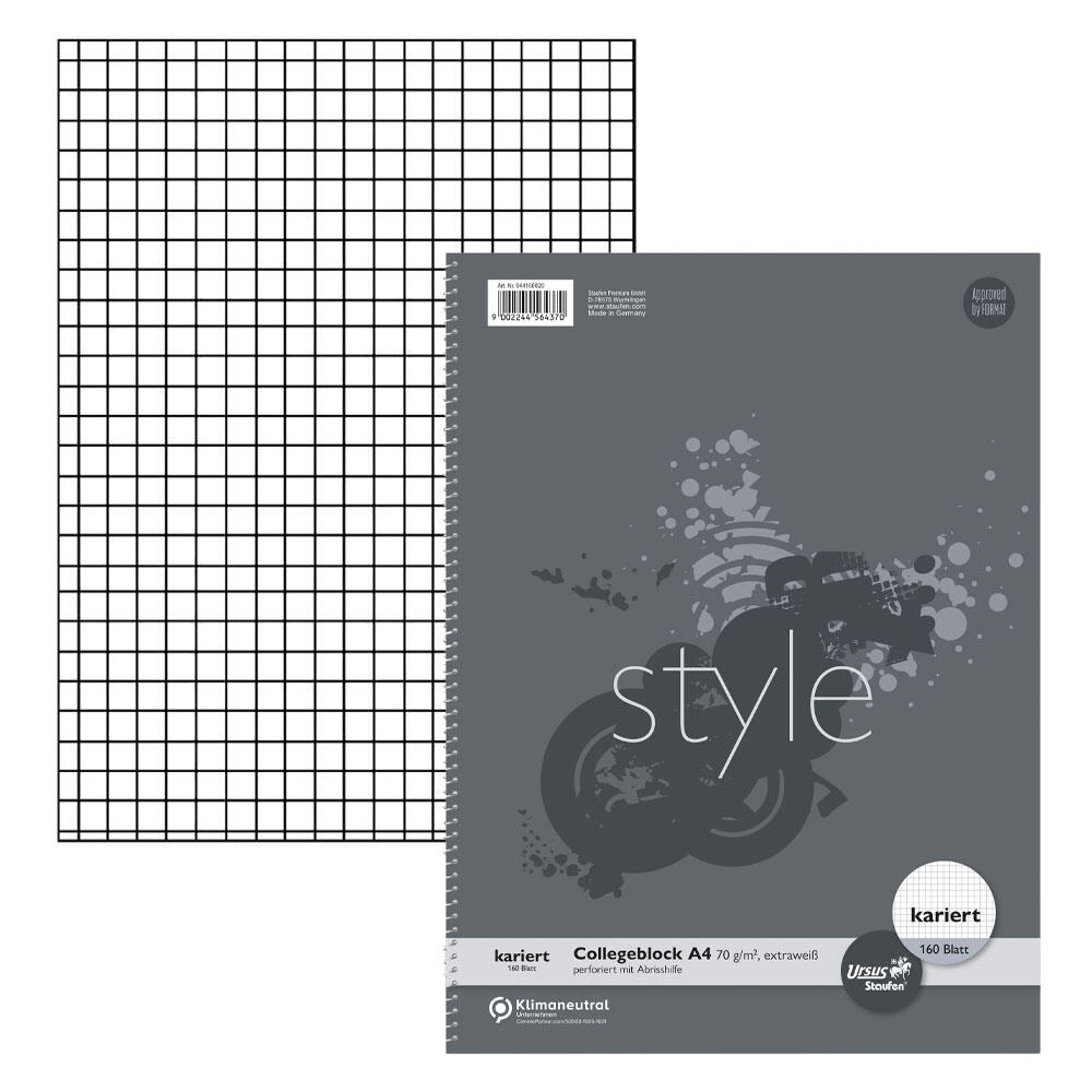 Der Ursus Collegeblock DIN A4 kariert ist die ideale Wahl für alle, die Wert auf Qualität und Funktionalität legen. Mit seinen 160 Blatt bietet er ausreichend Platz für Notizen, Skizzen und kreative Ideen. Das 70 g/m² schwere Papier sorgt für ein angenehmes Schreibgefühl und verhindert ein Durchdrücken der Tinte, was besonders bei intensiver Nutzung von Vorteil ist. Die flexible Bindung ermöglicht ein einfaches Umblättern und eine unkomplizierte Handhabung, egal ob du im Unterricht, bei der Arbeit oder zu Hause schreibst. Der Collegeblock kommt ohne Rand aus, was dir die Freiheit gibt, die gesamte Seite optimal zu nutzen. Die karierte Ausführung der Lineatur unterstützt dich dabei, gerade und saubere Notizen zu erstellen, die sich ideal für mathematische Aufgaben oder technische Zeichnungen eignen. Mit einem Format von DIN A4 passt der Block perfekt in jede Tasche oder jeden Rucksack, sodass du ihn überallhin mitnehmen kannst. Die 4-fach-Lochung ermöglicht eine einfache Ablage in Ordnern und sorgt dafür, dass deine Blätter immer an ihrem Platz bleiben. Das Papier ist holzfrei und elementar chlorfrei gebleicht (ECF), was nicht nur die Umwelt schont, sondern auch für eine hohe Qualität des Schreibmaterials sorgt. Der Ursus Collegeblock ist nicht nur praktisch, sondern auch ein zuverlässiger Begleiter für Schule, Studium und Beruf. Seine durchdachte Ausstattung und die hochwertige Verarbeitung machen ihn zu einem unverzichtbaren Utensil für jeden, der gerne organisiert und strukturiert arbeitet.Technische Daten
