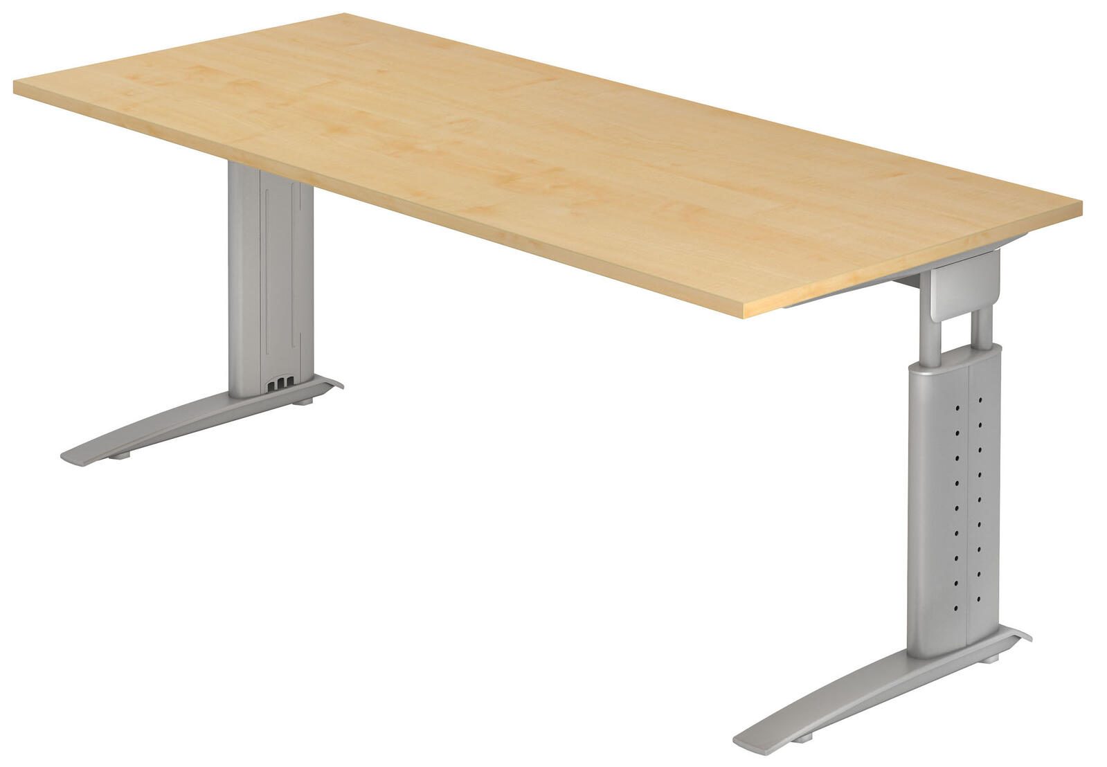 Der HAMMERBACHER höhenverstellbare Schreibtisch VUS19/3/S in elegantem Ahorn ist die ideale Wahl für Ihr Büro oder Homeoffice. Mit seiner großzügigen Tischplatte aus hochwertiger Spanplatte bietet er ausreichend Platz für Ihren Laptop, Notizen und weitere Büromaterialien. Die rechteckige Form und die ansprechende Ahornfarbe verleihen jedem Raum eine freundliche und moderne Atmosphäre. Das stabile C-Fuß-Gestell aus robustem Stahl sorgt für eine sichere Standfestigkeit und Langlebigkeit. Die silberne Farbe des Gestells harmoniert perfekt mit der Tischplatte und rundet das ansprechende Design ab. Mit den Maßen von 180 cm in der Breite, 80 cm in der Tiefe und 68 cm in der Höhe ist dieser Schreibtisch nicht nur funktional, sondern auch äußerst geräumig, sodass Sie Ihre Arbeitsumgebung individuell gestalten können. Ein herausragendes Merkmal dieses Schreibtisches ist die Höhenverstellbarkeit, die es Ihnen ermöglicht, die optimale Arbeitshöhe für Ihre Bedürfnisse einzustellen. Dies fördert eine ergonomische Sitzhaltung und trägt zur Verbesserung Ihrer Gesundheit und Produktivität bei. Ob im Sitzen oder im Stehen – der HAMMERBACHER Schreibtisch passt sich flexibel an Ihre Arbeitsweise an. Zusätzlich bietet der Schreibtisch durch sein schlichtes und zeitloses Design vielfältige Kombinationsmöglichkeiten mit anderen Möbelstücken. Der Verzicht auf Fächer oder Schübe sorgt für eine klare und aufgeräumte Optik, die Ihnen hilft, sich auf das Wesentliche zu konzentrieren. Profitieren Sie von einem Arbeitsplatz, der nicht nur funktional, sondern auch stilvoll ist. Der HAMMERBACHER höhenverstellbare Schreibtisch VUS19/3/S in Ahorn ist die perfekte Lösung für alle, die Wert auf Qualität, Ergonomie und modernes Design legen.Technische Daten