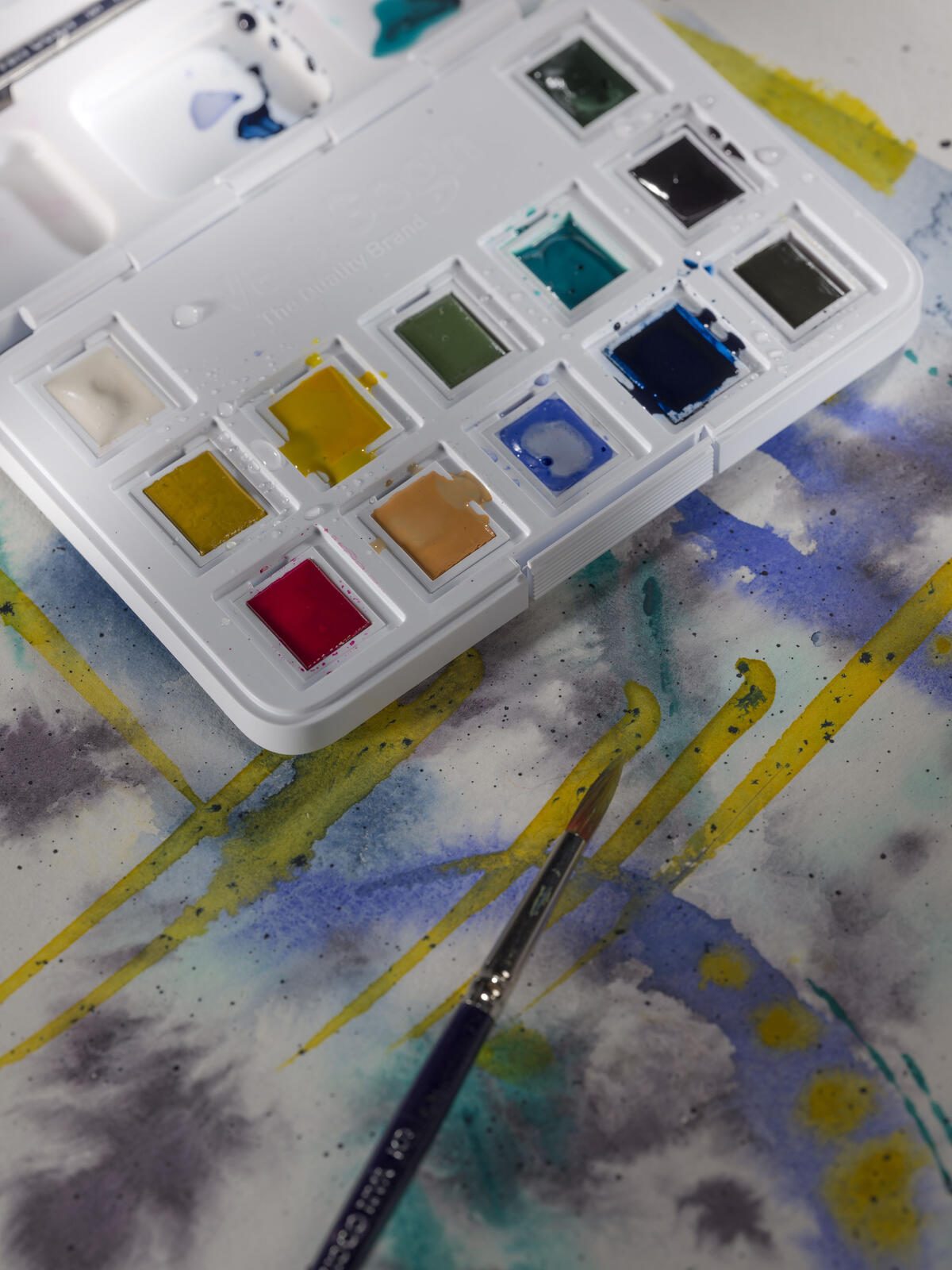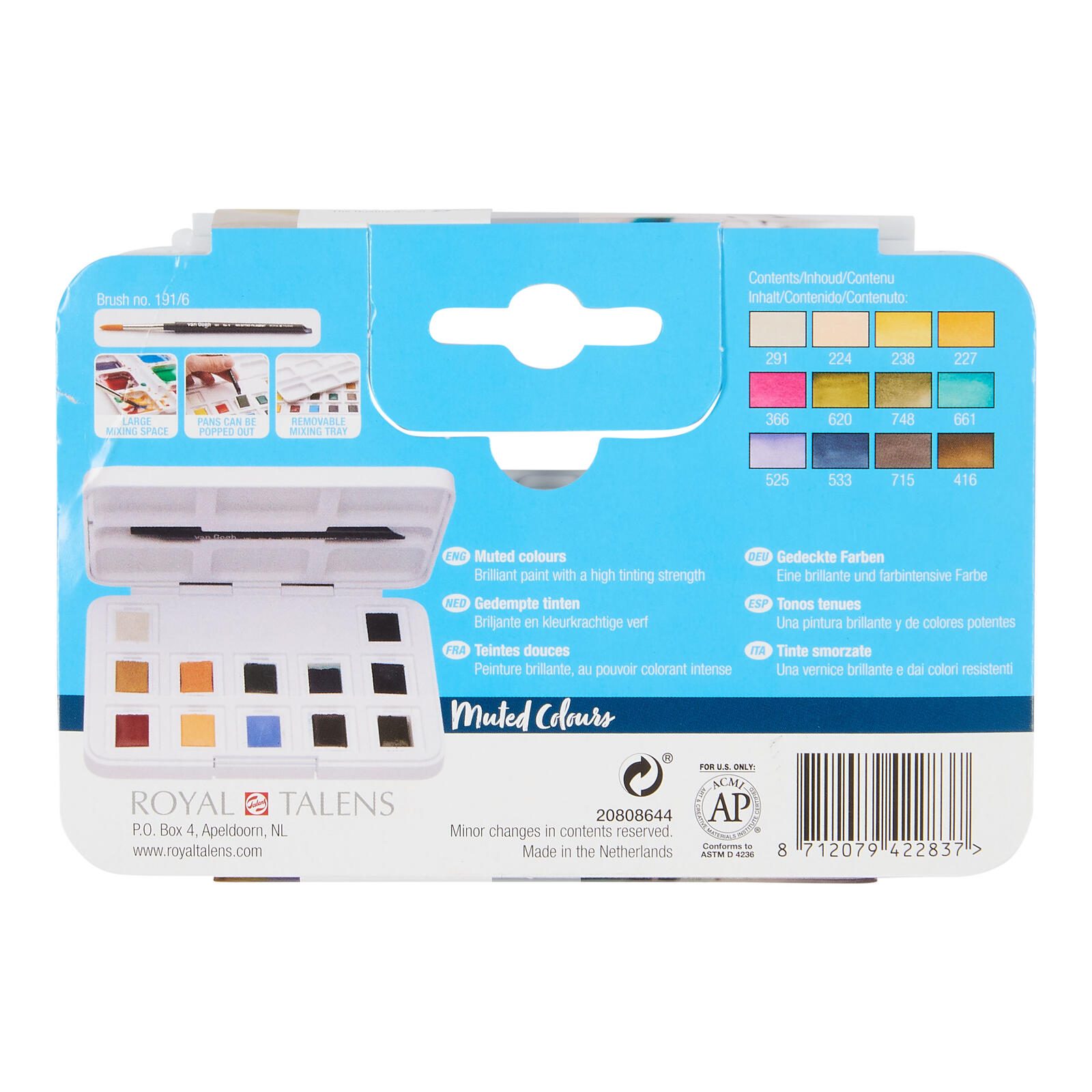 van Gogh Wasserfarbkasten titanbuff, neapelgelb-rot, gummigut, gelber Ocker, chinacridonrosa, olivgrün, davygrau, türkisgrün, lavendel, indigo, Neutralfarbe, Sepia 12 Farben