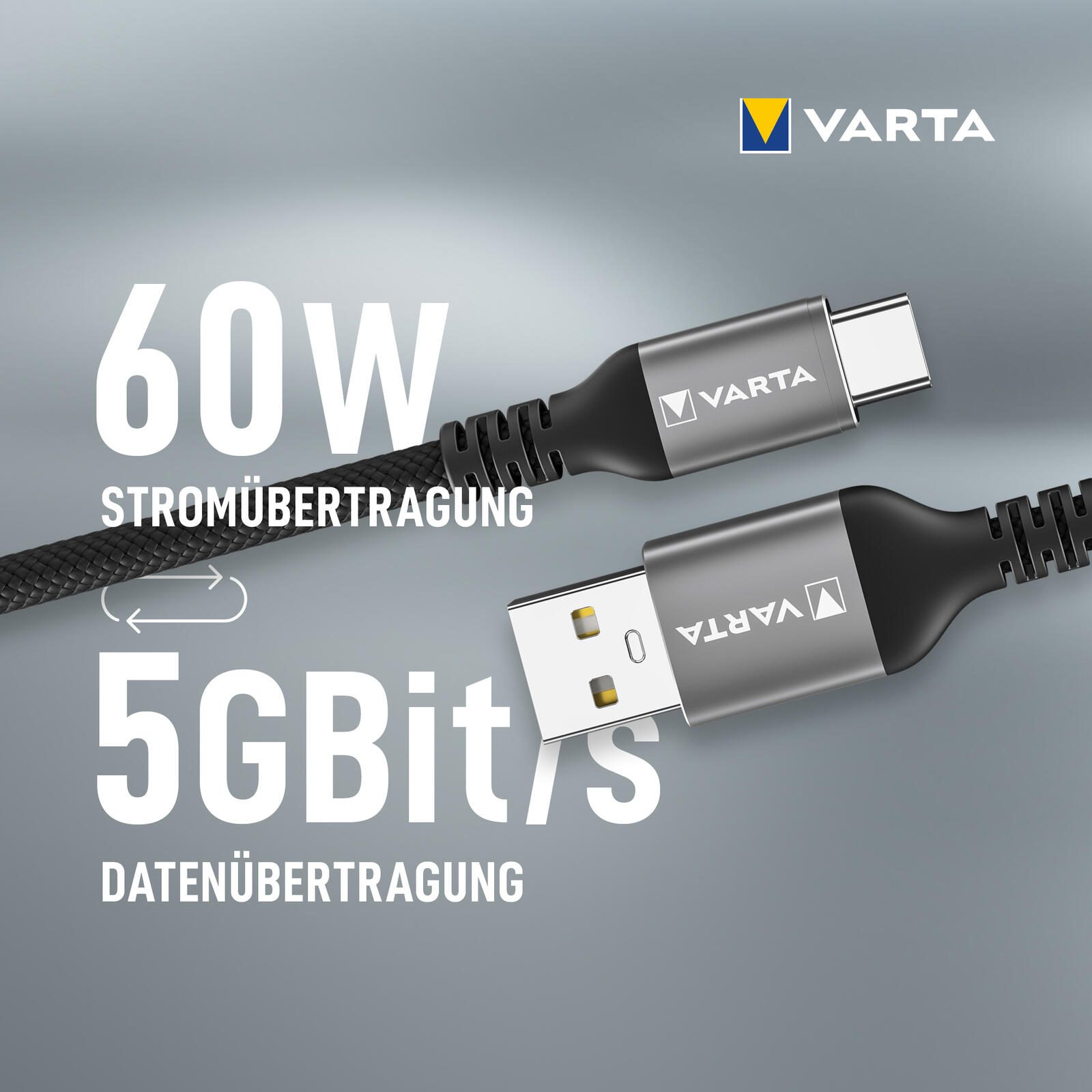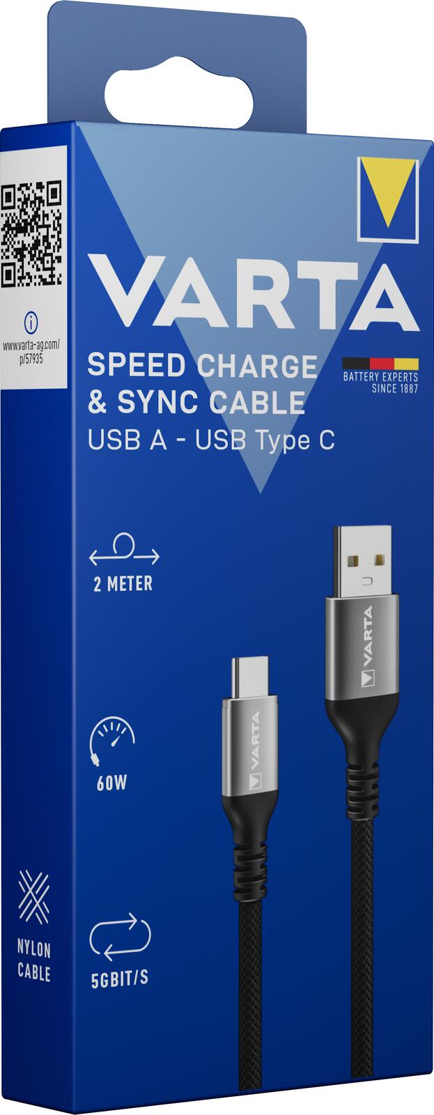 - Lieferumfang: 1x VARTA Speed Charge & Sync USB A auf USB Type C Kabel